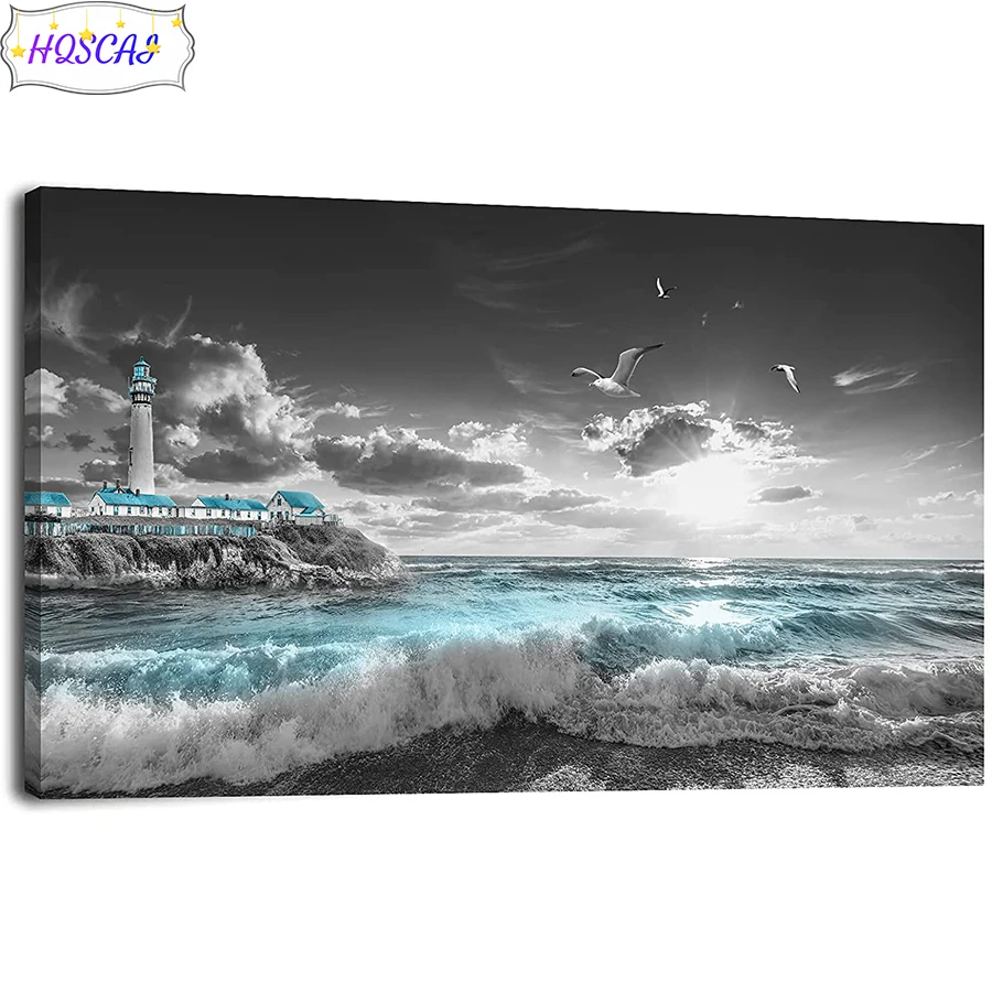 Алмазная вышивка, башня, дом, морской Орлан, современный декор, мозаика, алмазная живопись, полная квадратнаякруглая дрель, искусство, морской пейзаж