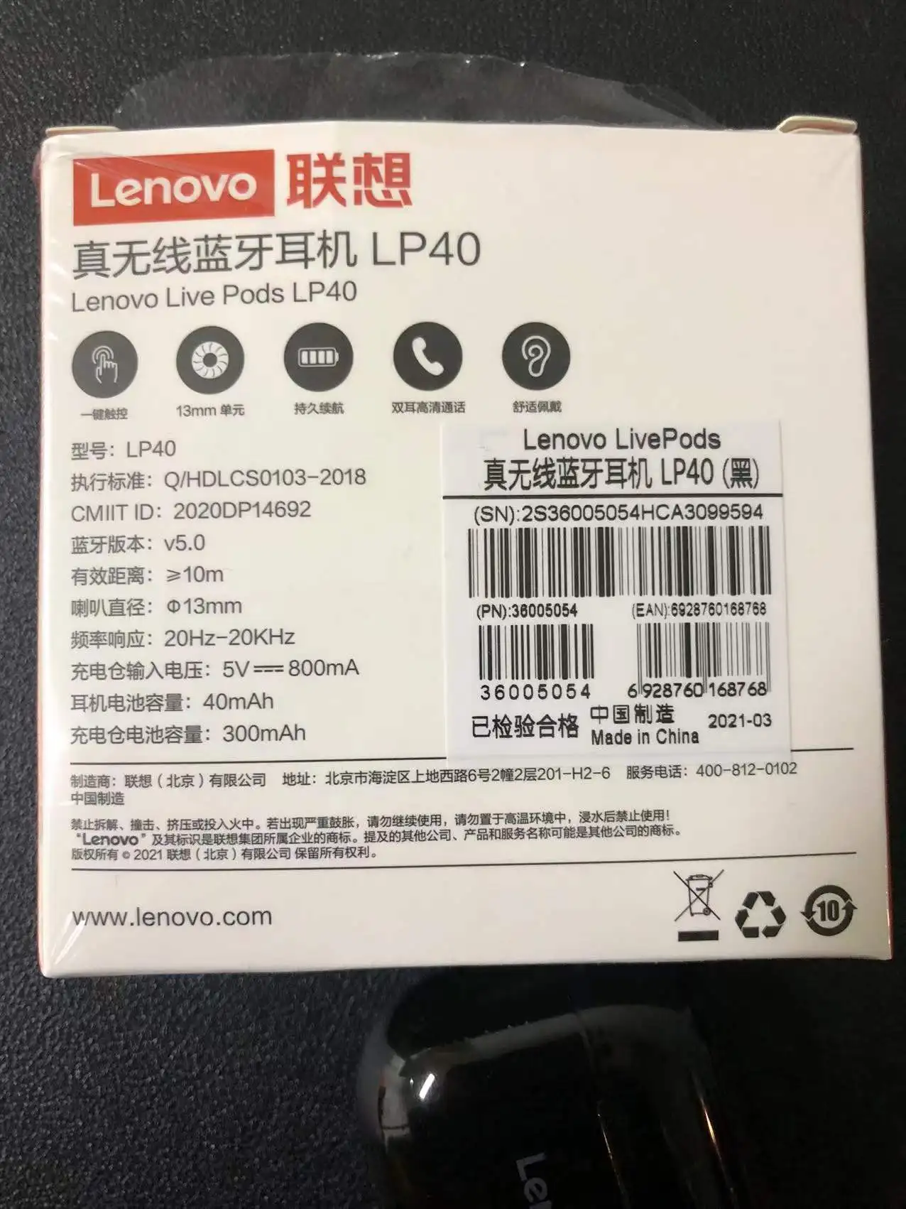 TWS-наушники Lenovo Air Phone LP40 с поддержкой Bluetooth и защитой от непогоды