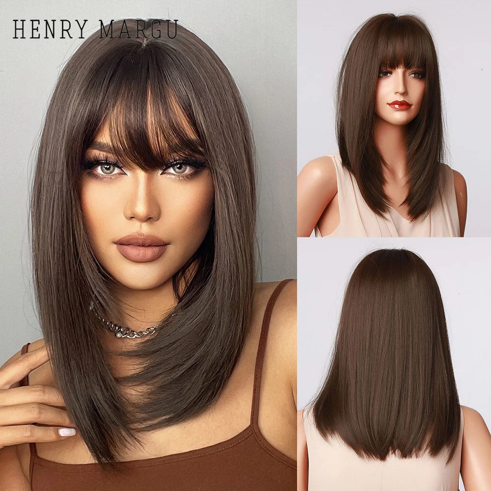 Женские прямые синтетические парики HENRY MARGU Bob, коричневые, блонд, длина плеч, натуральные волосы Лолита, термостойкие