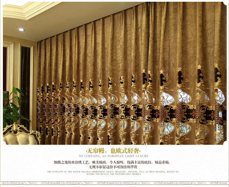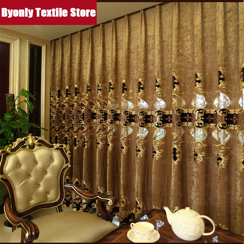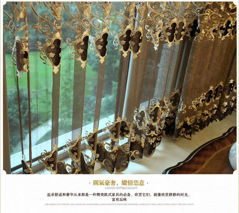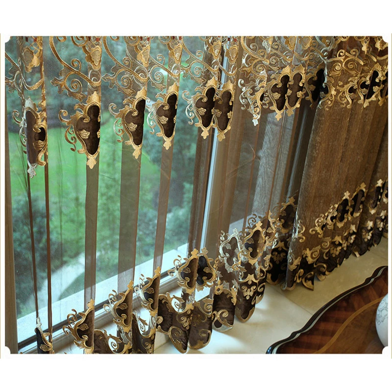 Европейские Роскошные коричневые вышитые занавески для гостиной, спальни, кухни, Золотой с отвесным подходящим фон с окнами Valance