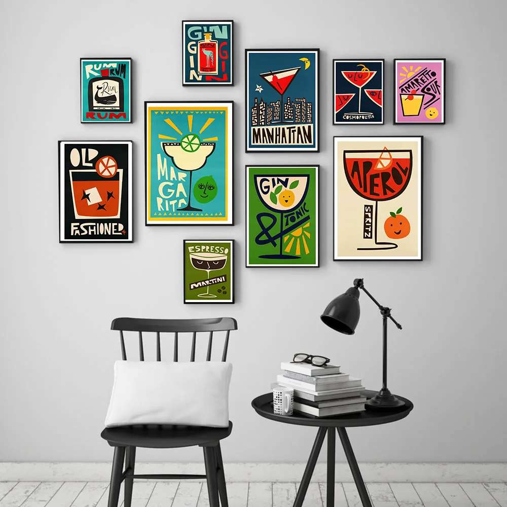 Мультяшные постеры с изображением фруктового сока, апирола, сприца и принт, рисунок на холсте джин манхэттен, Маргарита, картина на стену для клуба, бара, картины для домашнего декора