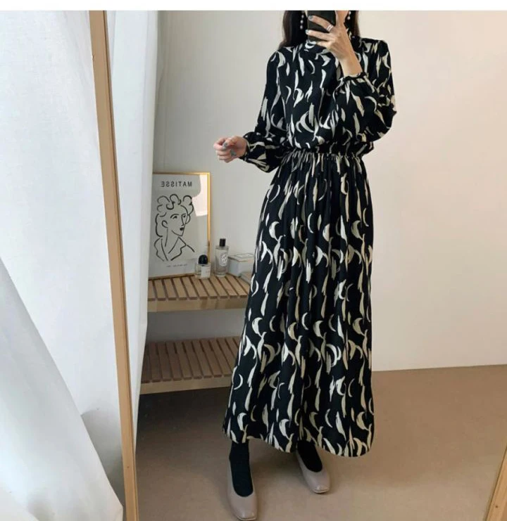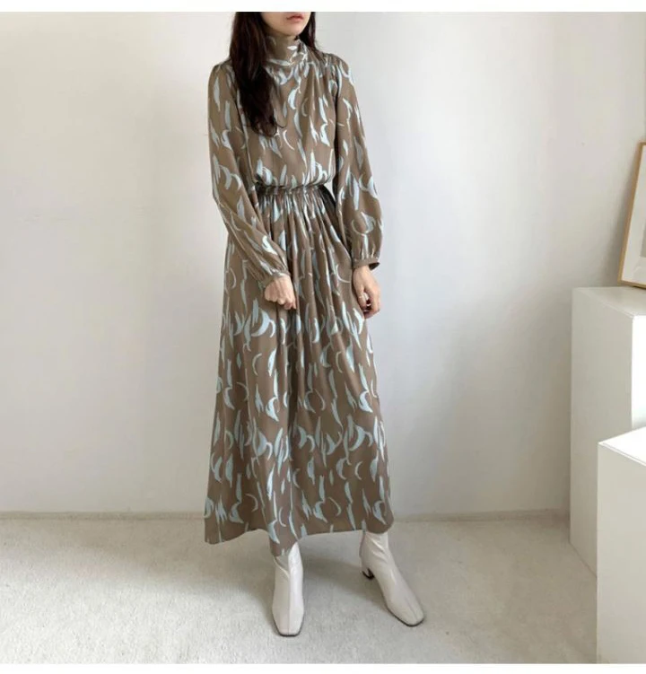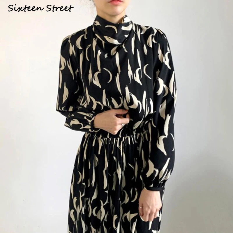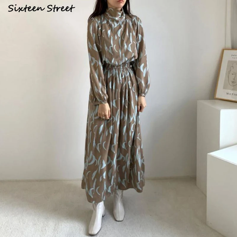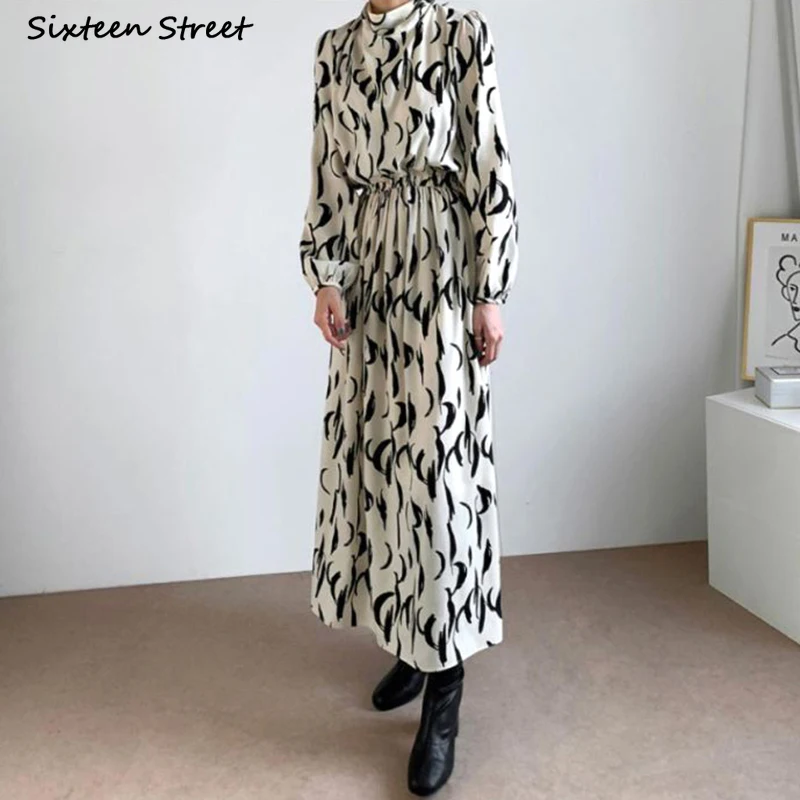 Женское платье с воротником-стойкой, вечернее облегающее платье большого размера с длинным рукавом, элегантное платье макси с принтом, офисная одежда, 2022