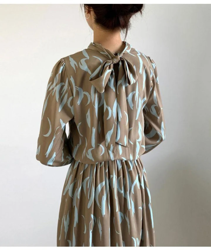 Длинное осеннее винтажное платье цвета хаки, с круглым вырезом и за...