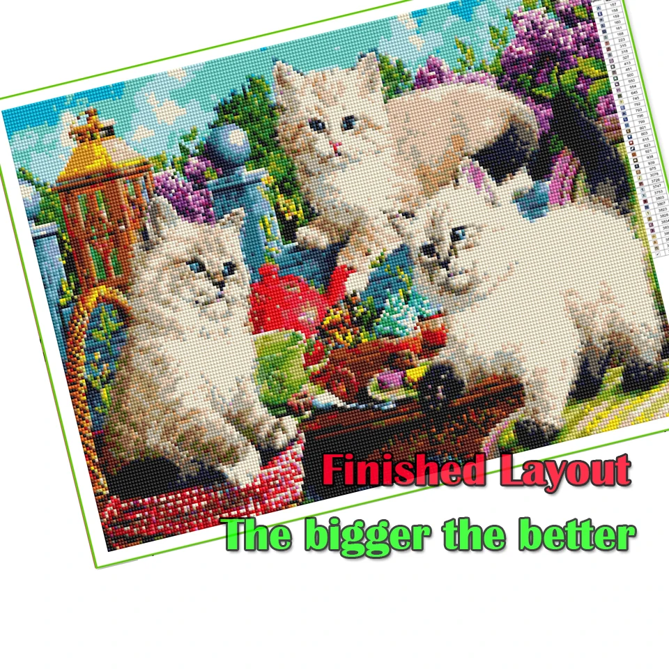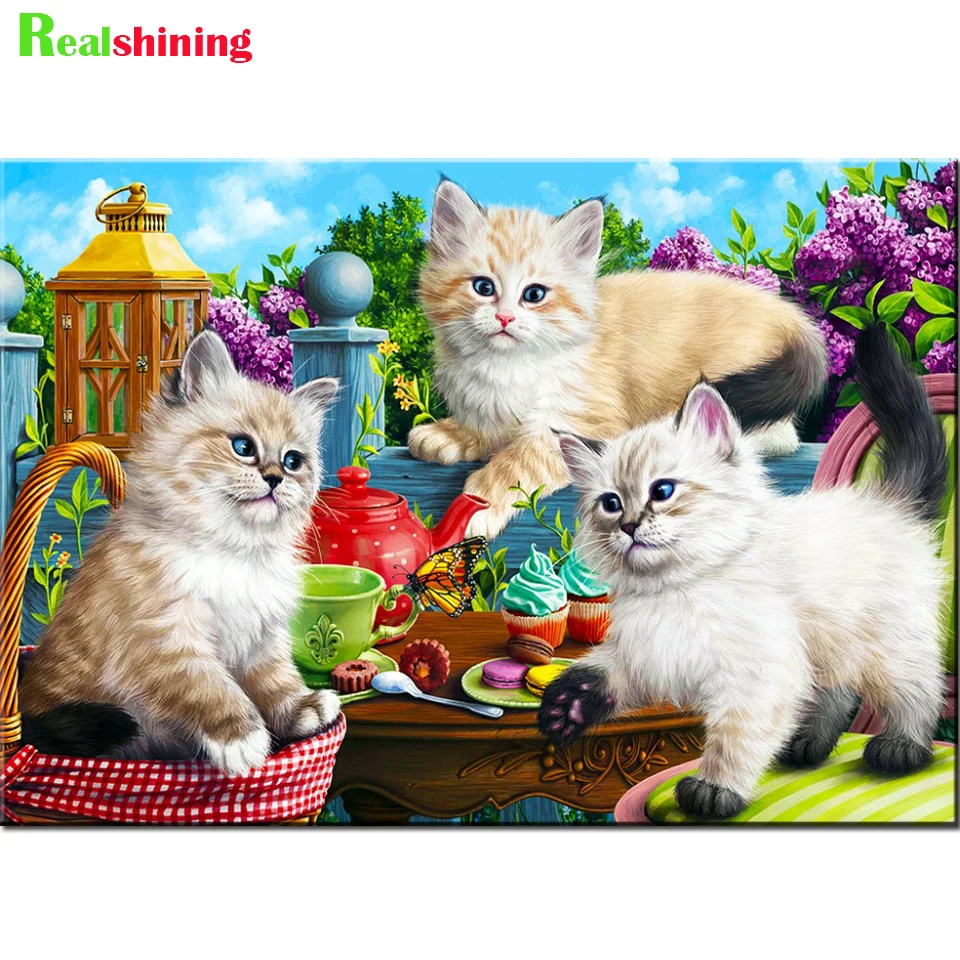 Алмазная живопись Три кошки, чайвечерние ринка, 3D картина стразы, Алмазная мозаика 5d, вышивка крестиком, домашний декор J297