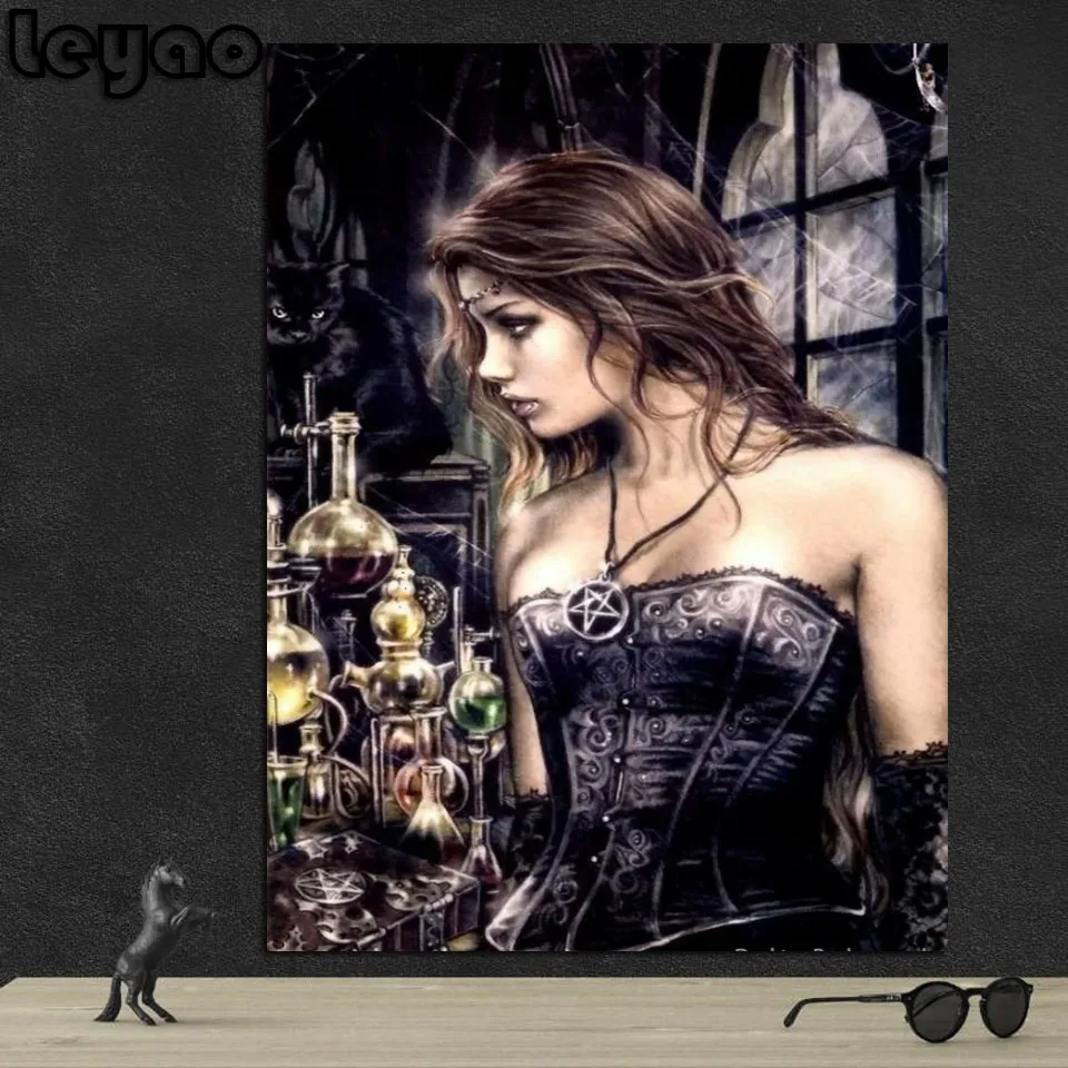 Алмазная живопись 5D сделай сам, Готическая женщина, сказочное иску...
