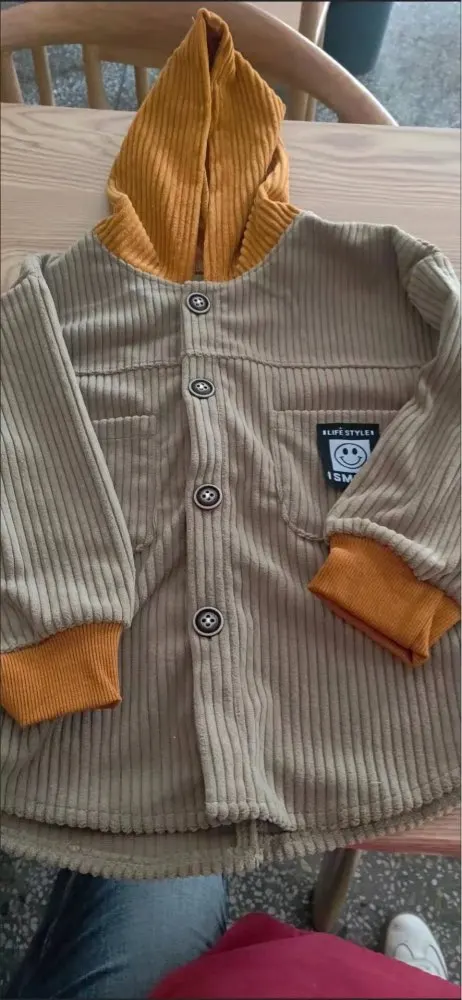 Осенняя куртка для маленьких мальчиков Вельветовая рубашка с капюшо...