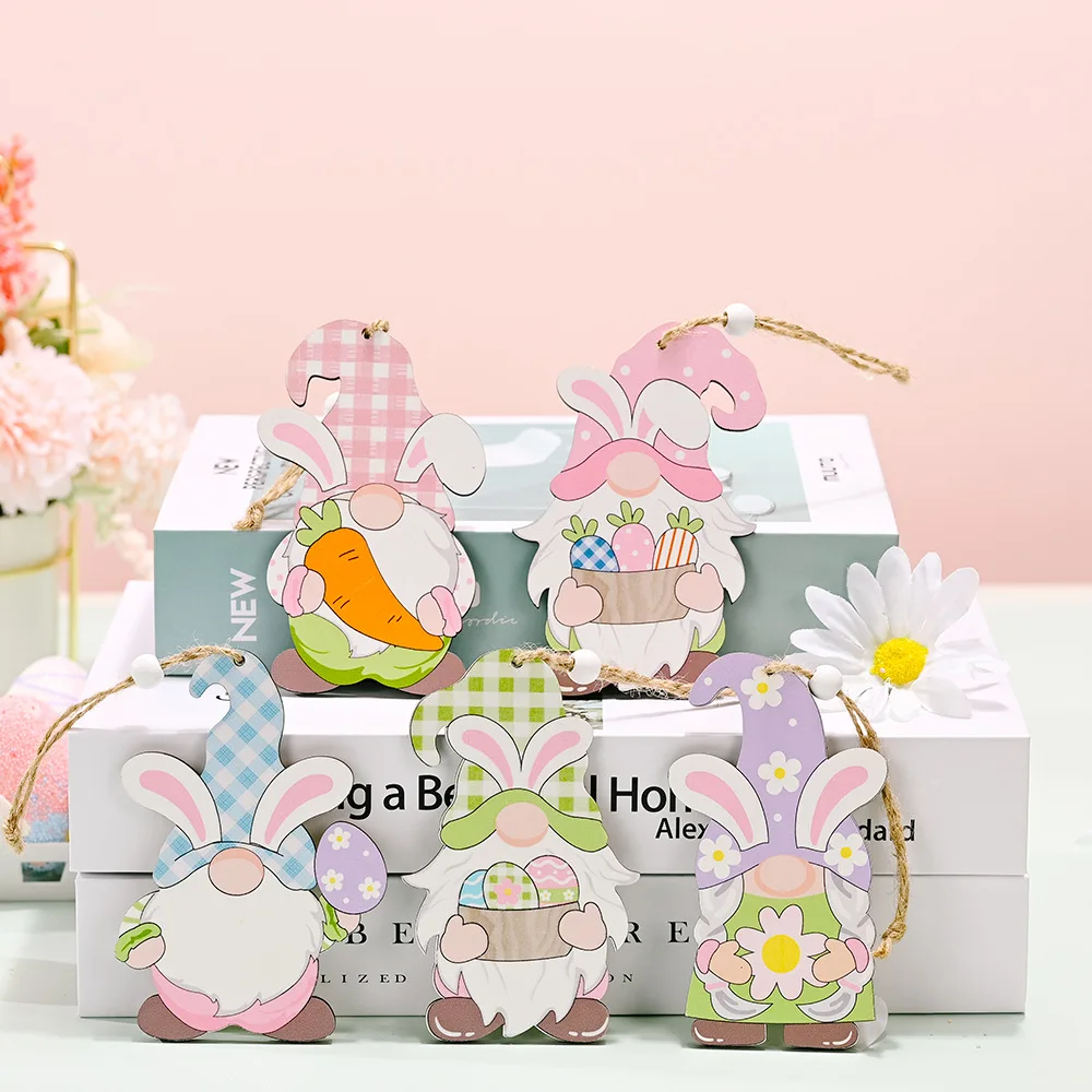 Милый деревянный Пасхальный кролик без лица, подвесные украшения, кролик, пасхальвечерние, добро пожаловать, весенние красочные яйца, вечеринка на Пасху