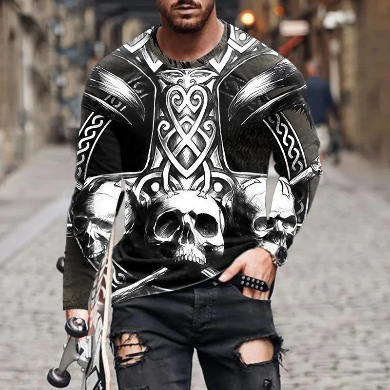 Футболка мужская с длинным рукавом и 3D-принтом черепа