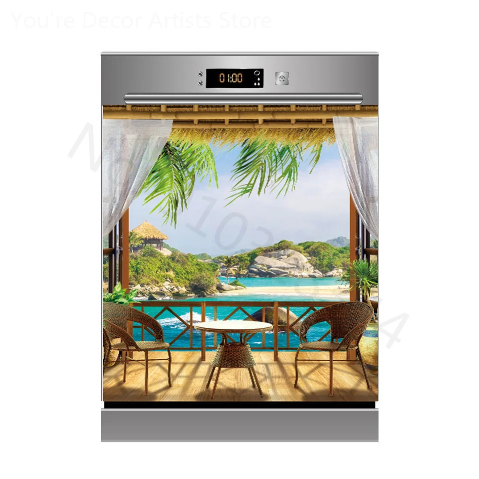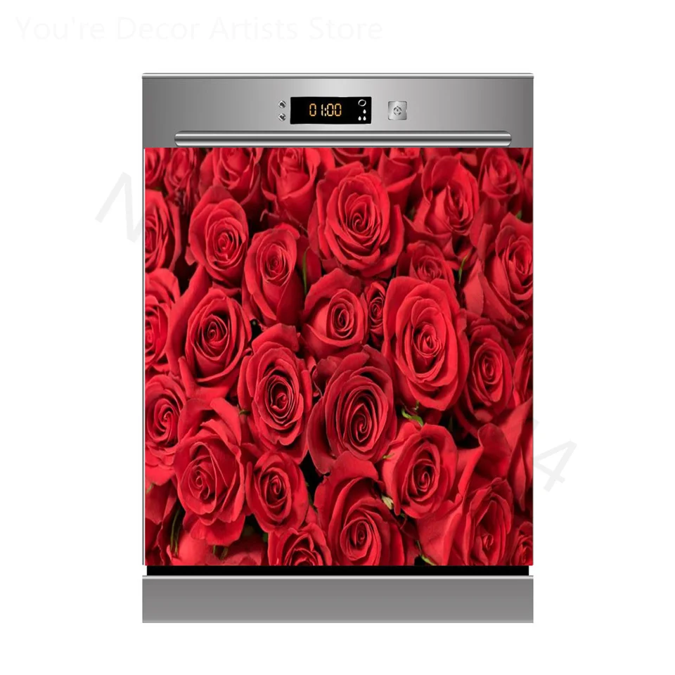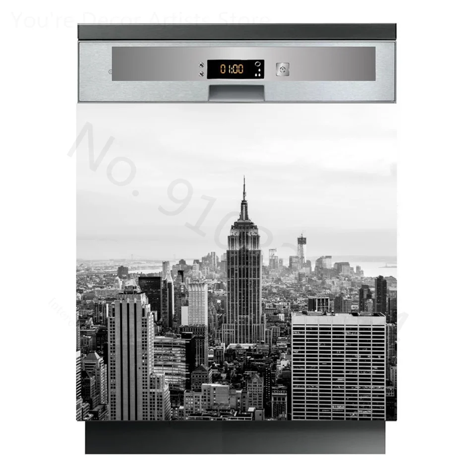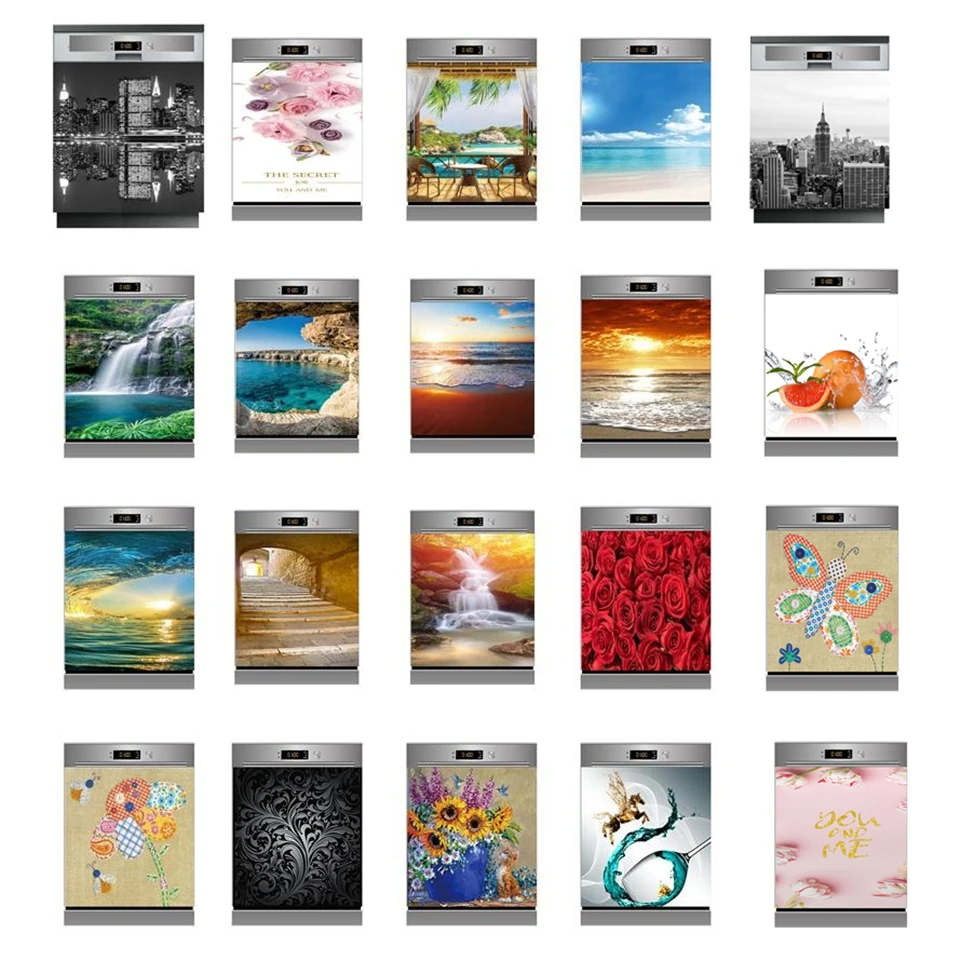 Самоклеющиеся виниловые наклейки для посудомоечной машины, городской пейзаж, цветы, обои, 3D мебель, украшение, наклейка на заказ для домашнего художественного декора