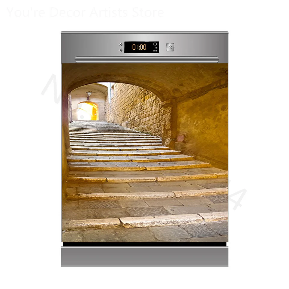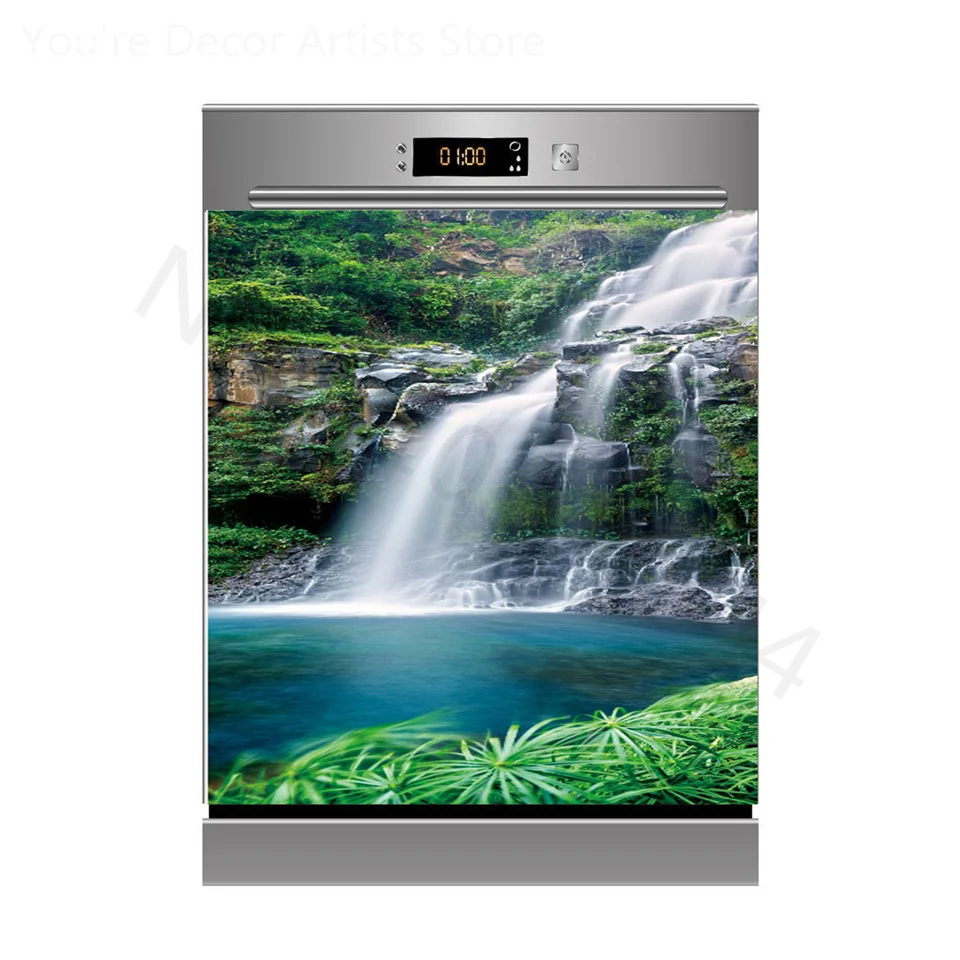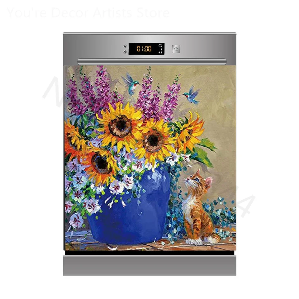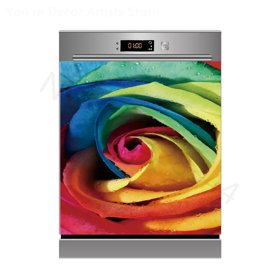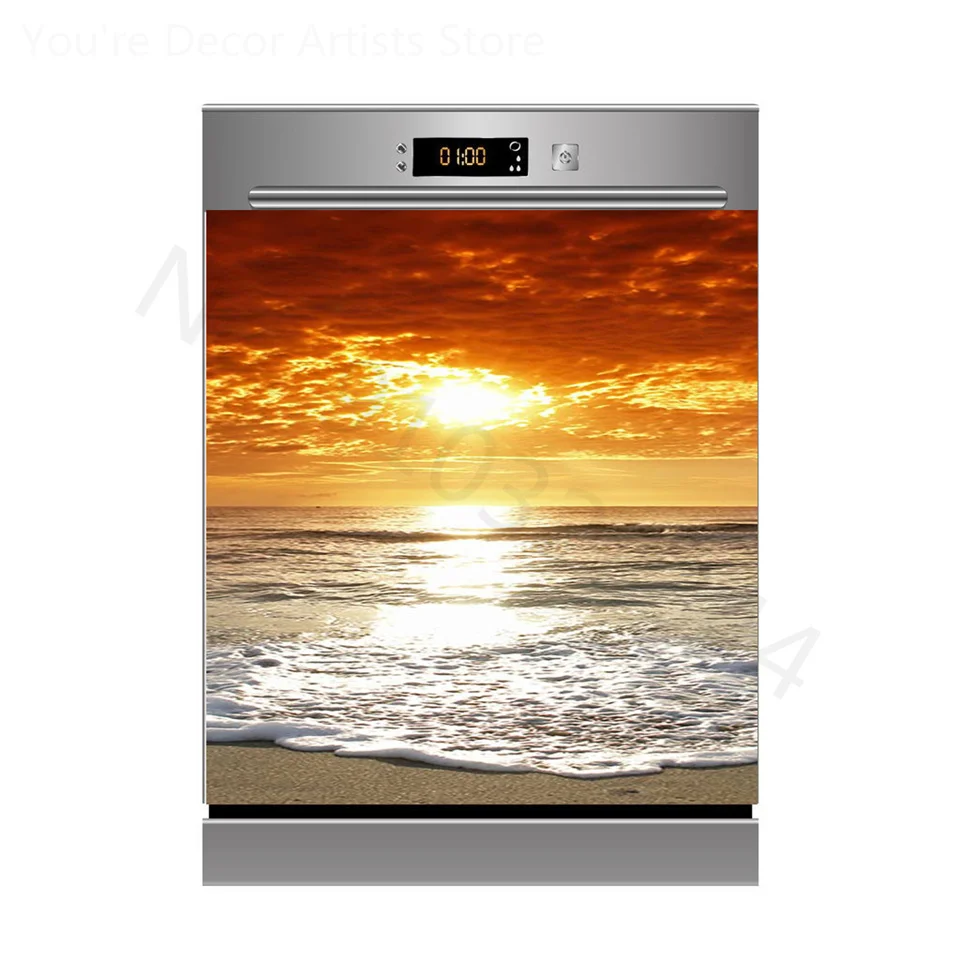 Самоклеющиеся виниловые наклейки для посудомоечной машины, городской пейзаж, цветы, обои, 3D мебель, украшение, наклейка на заказ для домашнего художественного декора