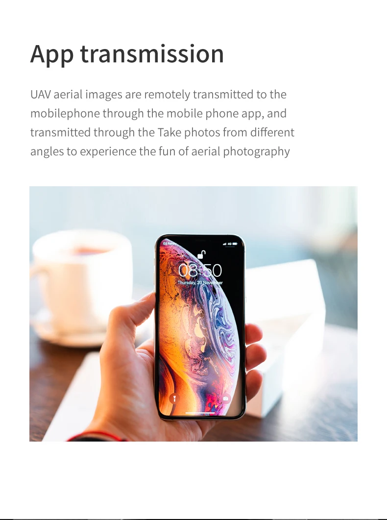 На расстоянии 1 метра от препятствия Дрон будет использовать инфракрасный светильник, который он переносит, чтобы избежать препятствий. Это может предотвратить беспилотник от управления полетом во времени и избежать препятствий во время полета. -Складные руки, компактная конструкция, легко носить с собой. -Подключаемое приложение с функцией Wi-Fi, вы можете делать фотографии/видео через камеру телефона и передавать изображения в режиме реального времени. Вы можете получить наиболее реалистичное изображение, чтобы показать нам. Есть отличные видео эффекты в визуальном -Встроенная функция возврата в дом (RTH) может обеспечить более безопасный полет. Когда батарея Низкая или сигнал слабый, Дрон автоматически и точно вернется домой, не беспокоясь о потере дрона. -Оптическое позиционирование потока. Фиксированная высота делает съемку в помещении более легкой и стабильной. -Режим удержания высоты. Установив внешнее давление воздуха, Квадрокоптер может постоянно парить в воздухе, что облегчает съемку. -Фото жестов/видео. Вы будете записывать свою красоту с помощью жестов, сломать старый способ фотографирования и открыть для себя новые вещи (в пределах 3 м) -Самое длинное время полета составляет 15 минут. Большой емкости 3,7 V 1800mAH аккумуляторная батарея может производить до 15 минут времени полета. -Следуй за мной. Независимо от того, куда вы идете, Дрон автоматически отслеживает и захватывает вас. Оставайтесь на фото в любое время, вы можете легко получить сложные фотографии и предоставить функции полета без рук и селфи. -Режим полёта Waypoint. Откройте приложение для дрона, используйте план полета у вас под рукой, просто нарисуйте маршрут на экране, и вертолет будет автоматически летать в соответствии с указанным путем. -Объемный звук с фиксированной точкой. Выберите точку, и Дрон полетит вокруг этой точки. -Шестиосевой гироскоп, полет более стабильный и простой в управлении. -Фюзеляж quadcopter изготовлен из высокопрочного инженерный пластик, который является светильник в весе и прочный.