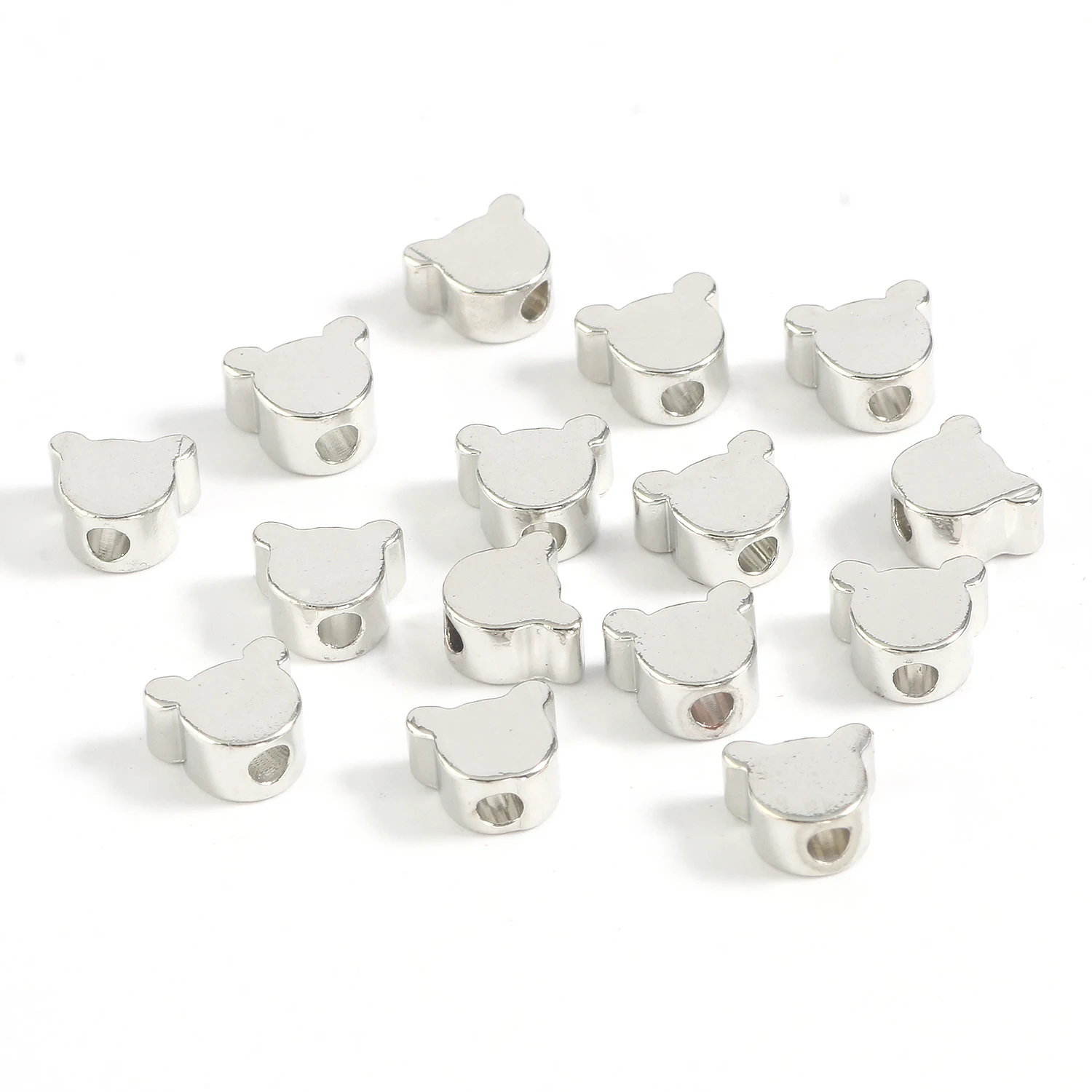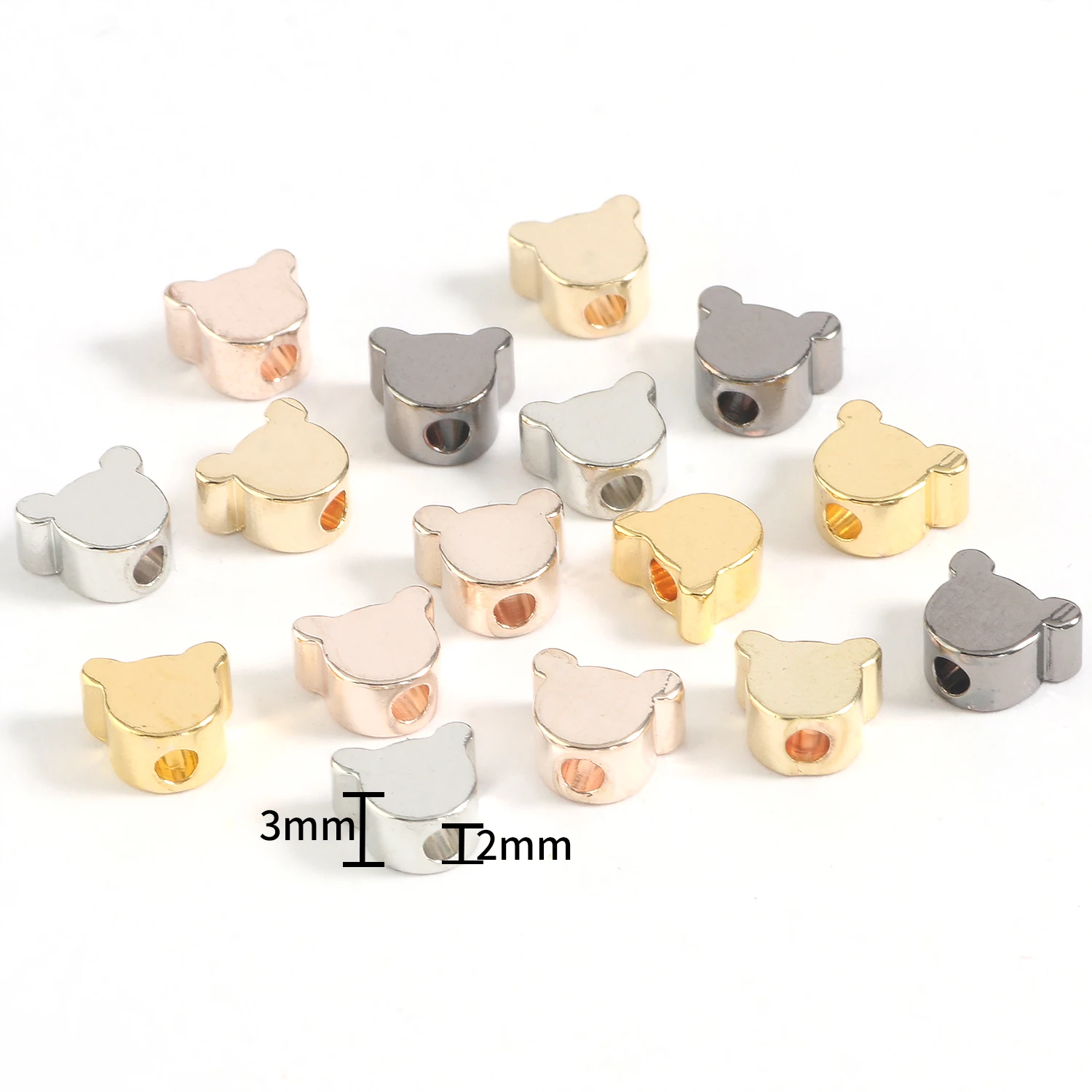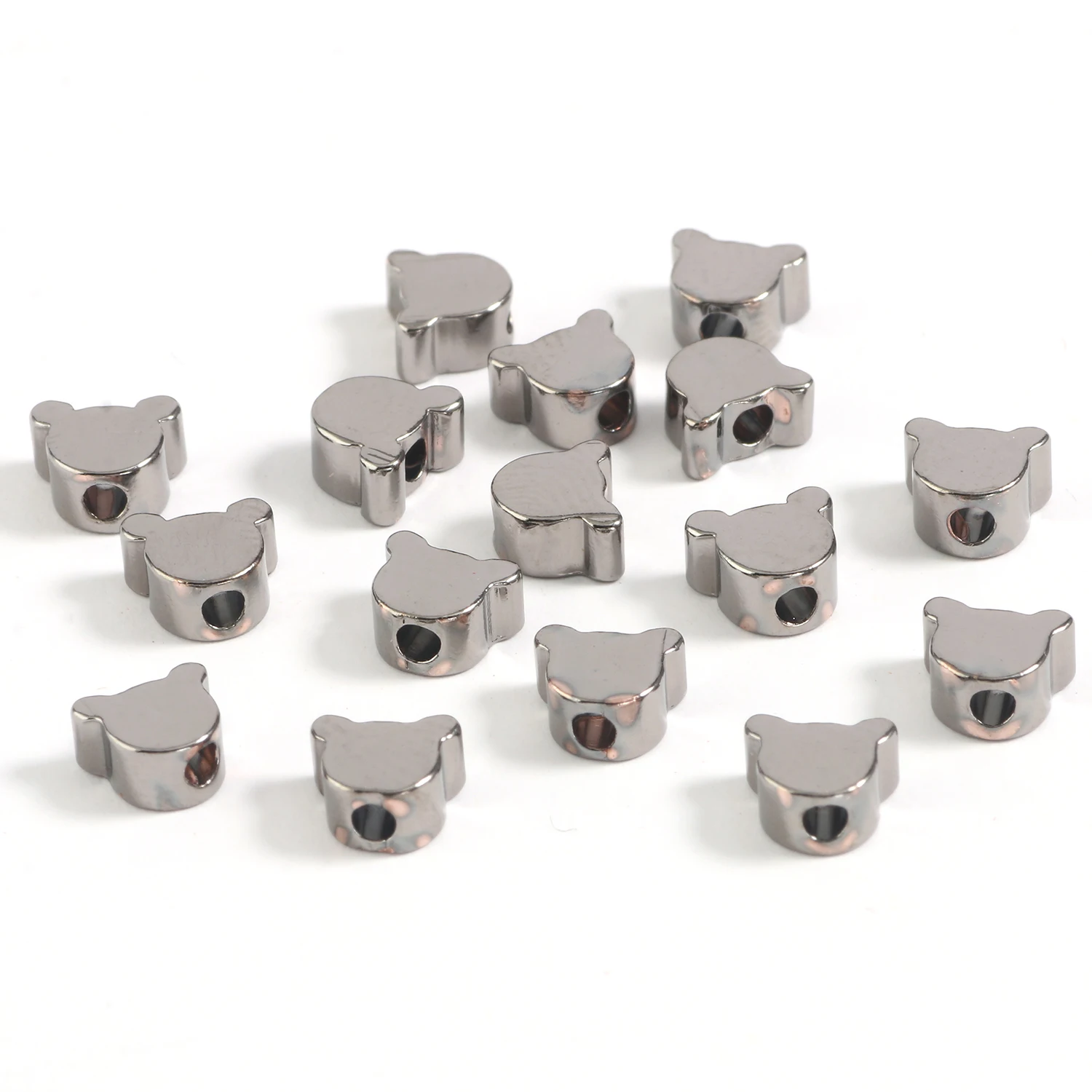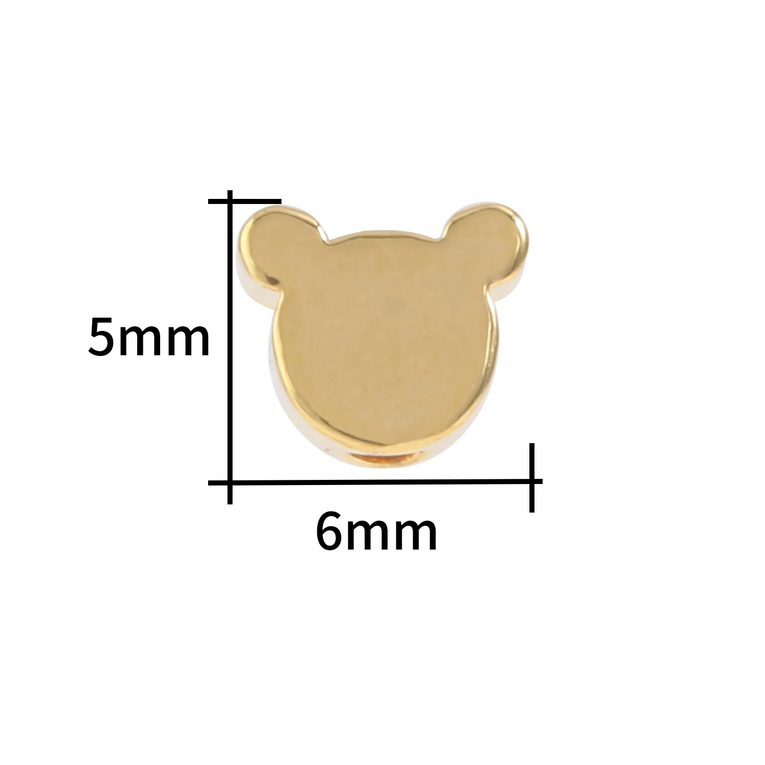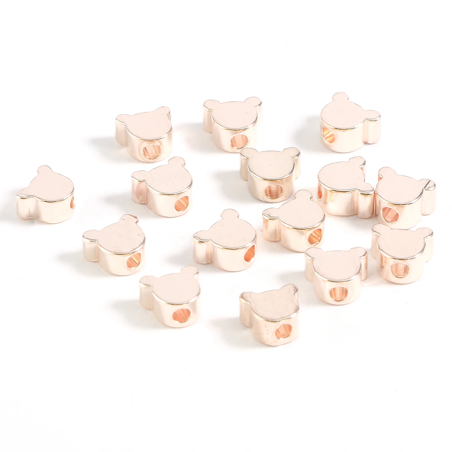 10 шт./лот, 6x5 мм, нержавеющая сталь, розовое золото, милая голова медведя, амулеты, разделительные бусины для рукоделия, ювелирные изделия, браслеты на талию