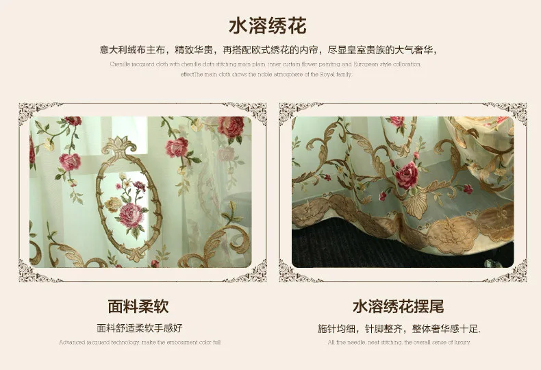 Европейские Роскошные коричневые шенилле шторы с вышивкой для гости...