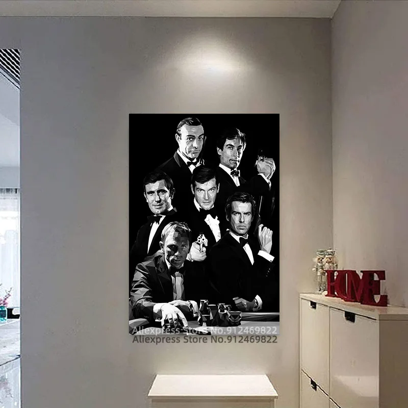 Классический кинопостер Джеймс Бонд 007, холст для рисования, плакаты и принты, настенные картины для украшения спальни, без рамки