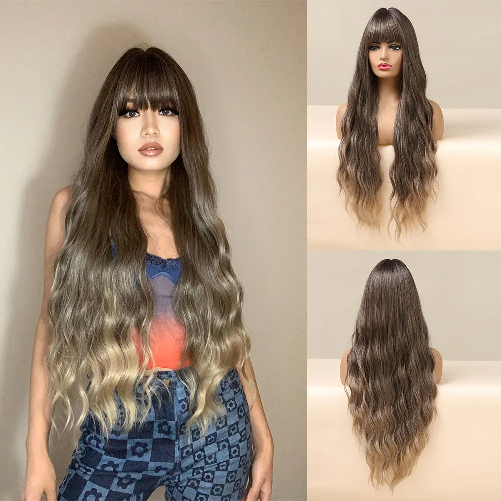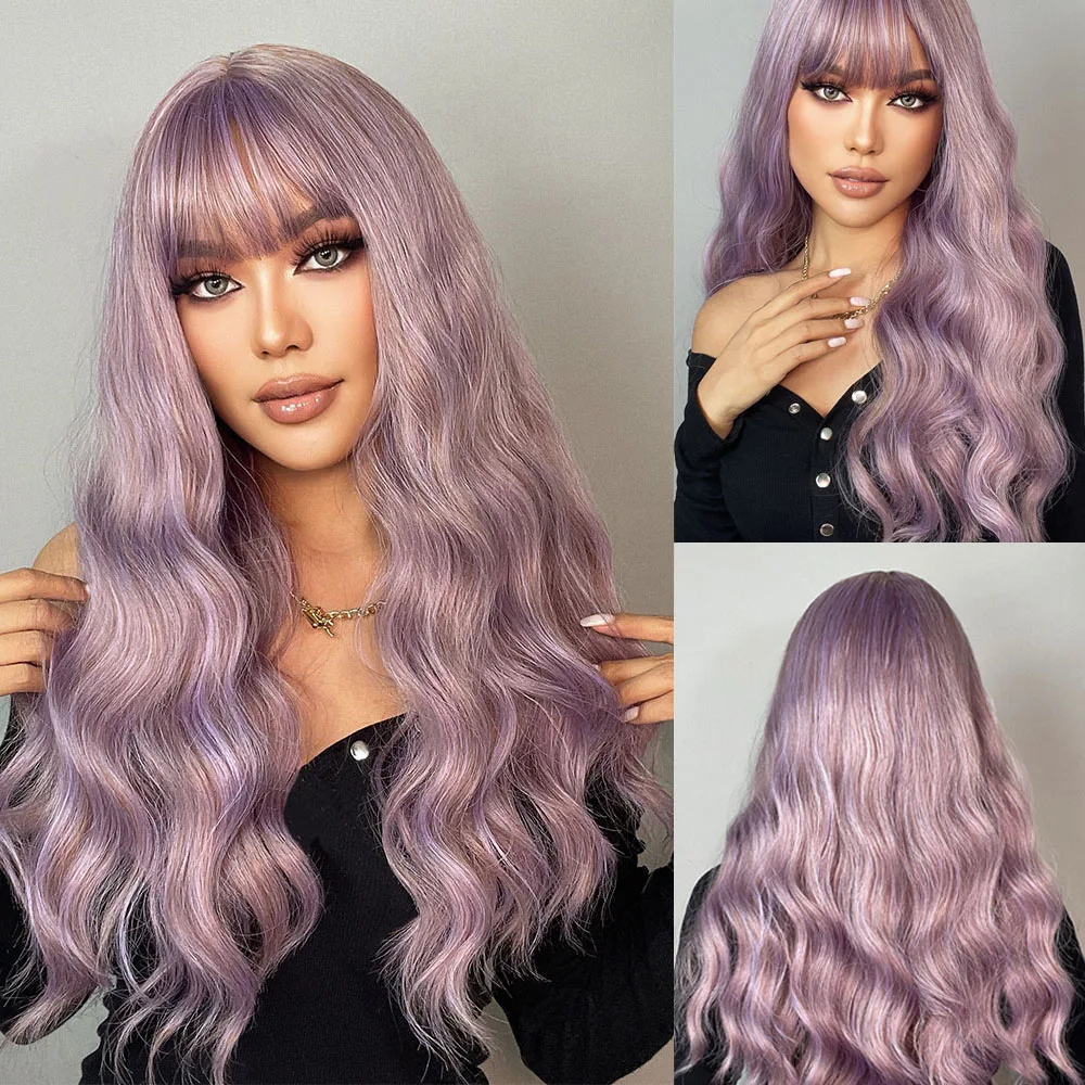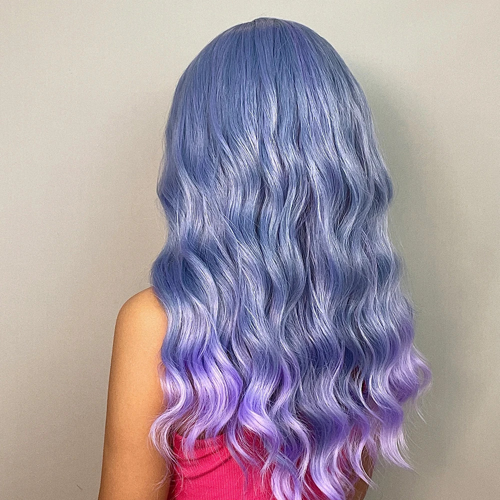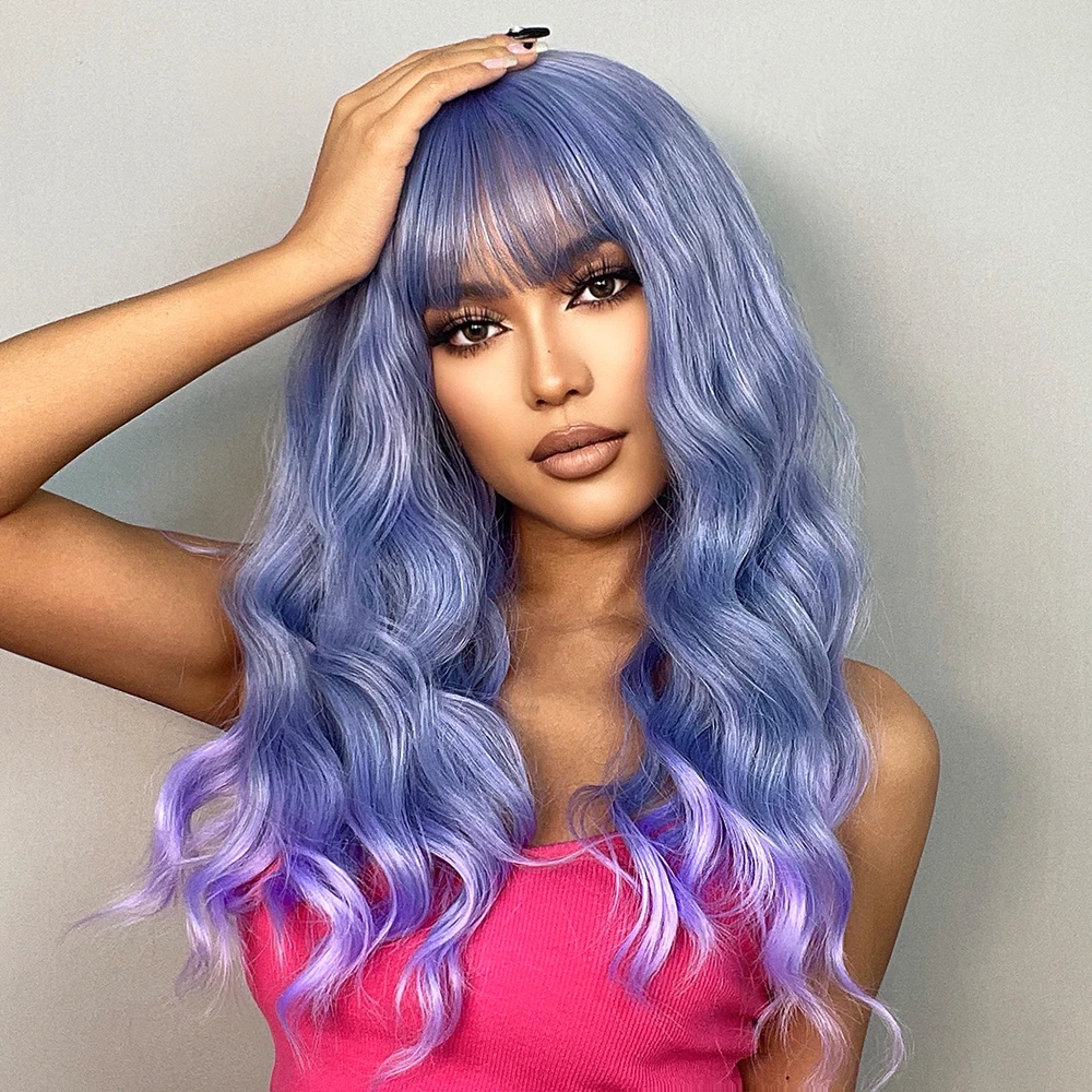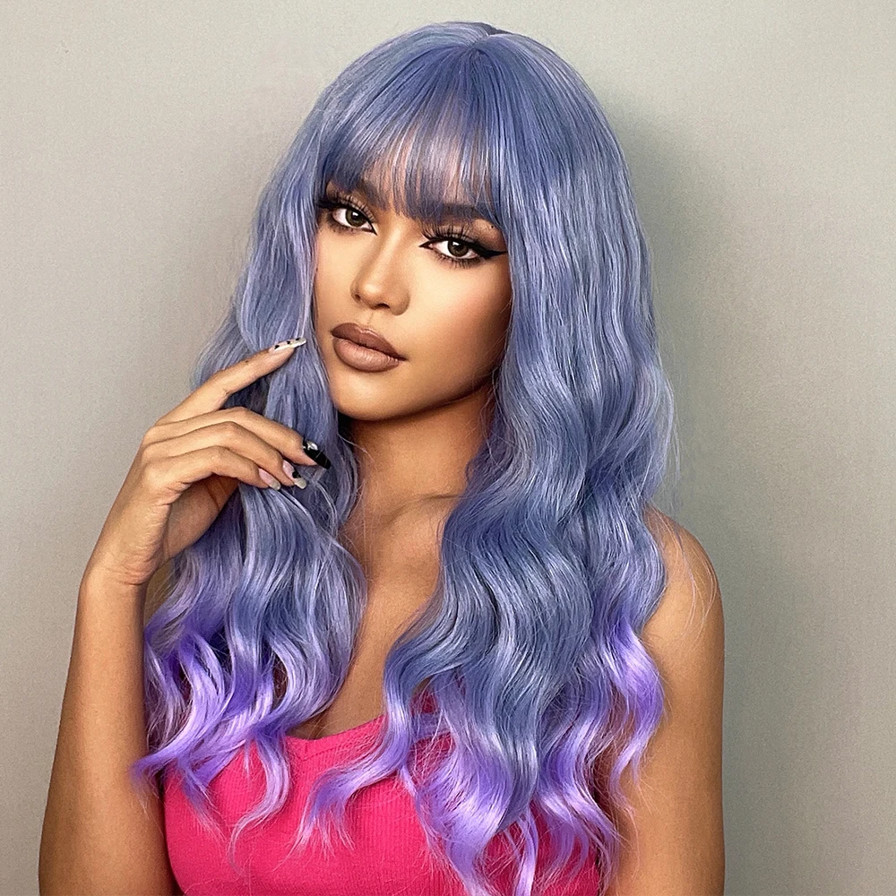 Парик для косплея и вечеринки Генри маргу, Синтетические длинные волосы Лолиты с волнистыми синими и фиолетовыми Омбре для женщин, парики из афро-волос с челкой, термостойкие