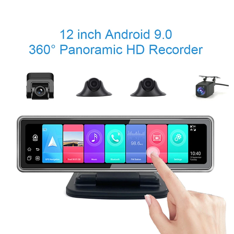 Видеорегистратор автомобильный, 12 дюймов, Android 9,0, 4G, 4 канала, 4 камеры
