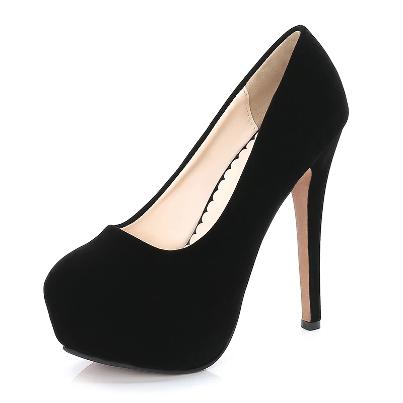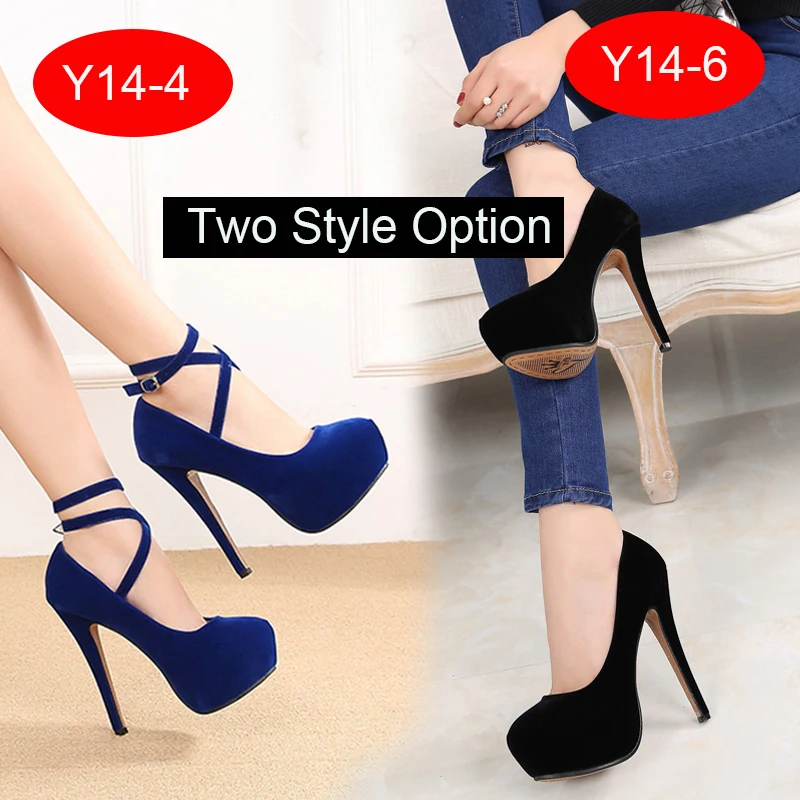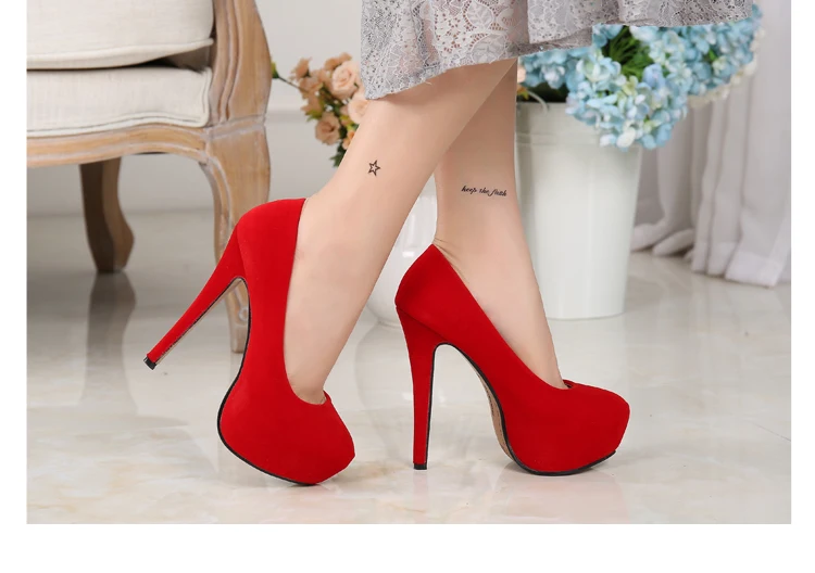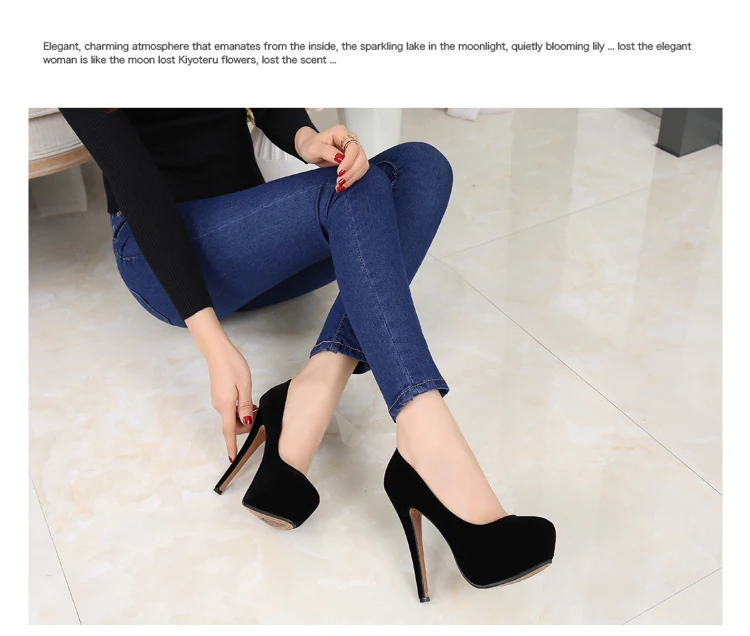Туфли-лодочки на высоком каблуке из флока, Привлекательная модель, модная брендовая повседневная обувь на ремешке для шоу вечерние, женская обувь высокого качества, 55-46