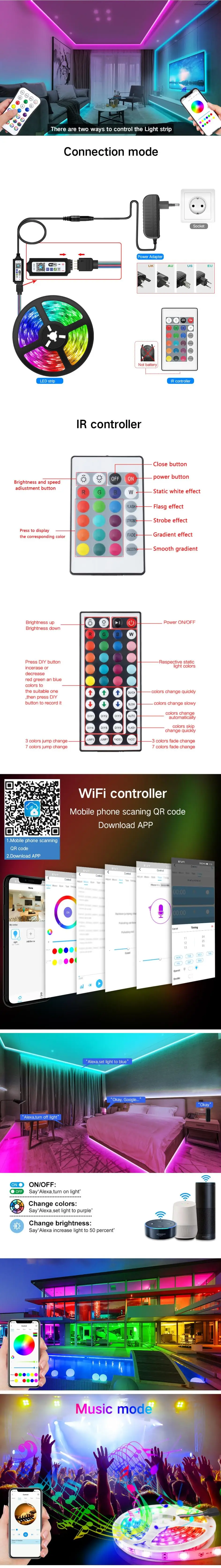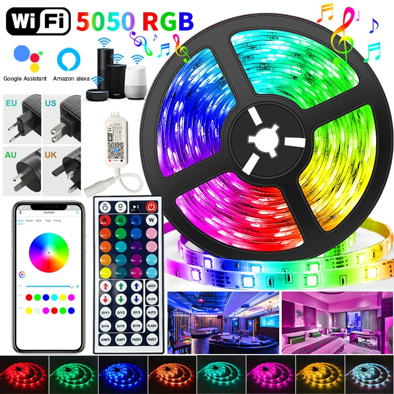 Светодиодная лента WIFI освещение RGB Светодиодная лампа SMD 5050 Гибкая водонепроницаемая лента диод Alexa управление телефоном DC адаптер 5M-15M 30 LED/m