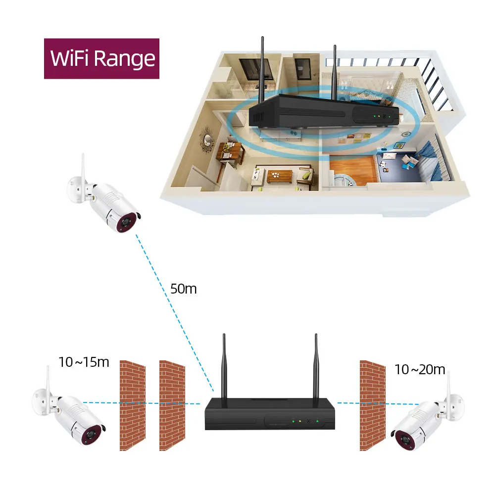 Беспроводные соединения между камерами и NVR, беспроводная передача до 50 метров (без препятствий)