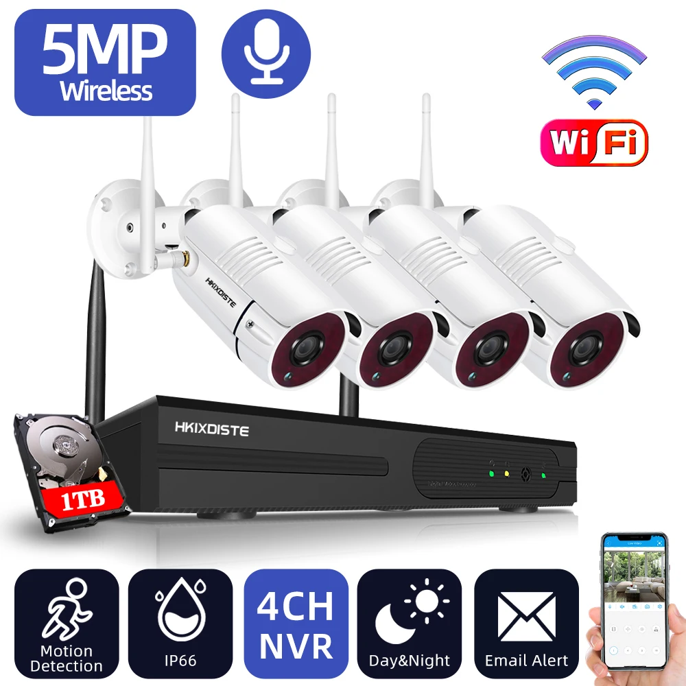 H.265 + 4 канала 5MP беспроводная WIFI CCTV система 4CH NVR комплект 4 шт Аудио Открытый IP66 безопасности IP камера P2P видео наблюдения набор