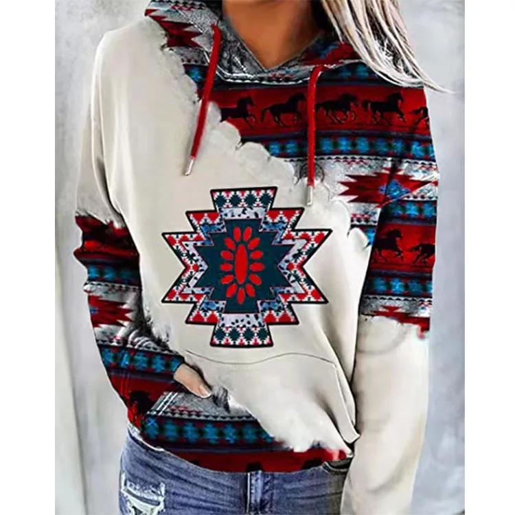 Женские толстовки, Повседневный пуловер с принтом в фольклорном сти...