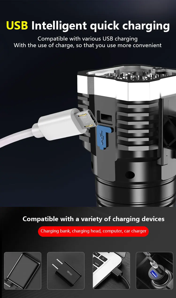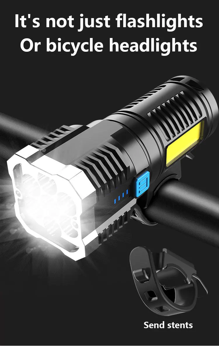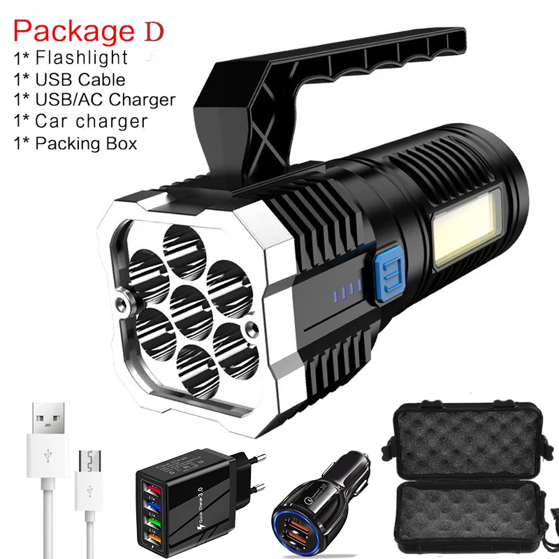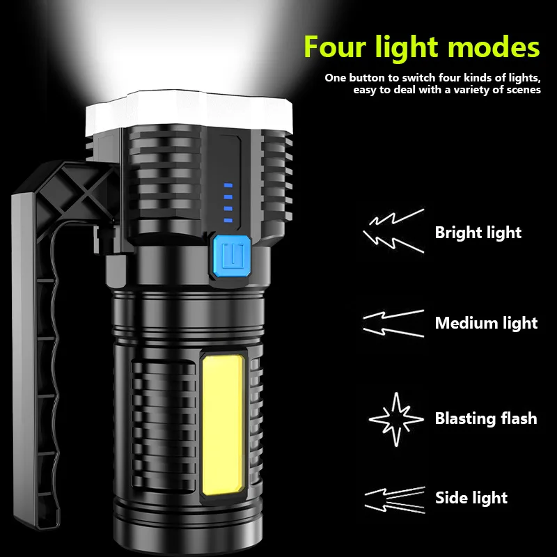 Светодиодный 4-ядерный Многофункциональный прочный фонарь, бытовая портативная тактическая лампа с босветильник освещением, Cob, зарядка через Usb
