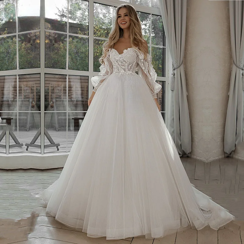 Женское свадебное платье It's yiiya, белое кружевное платье с рукавами-фонариками и 3D цветочной аппликацией на лето 2022