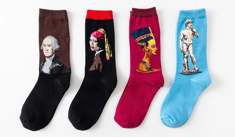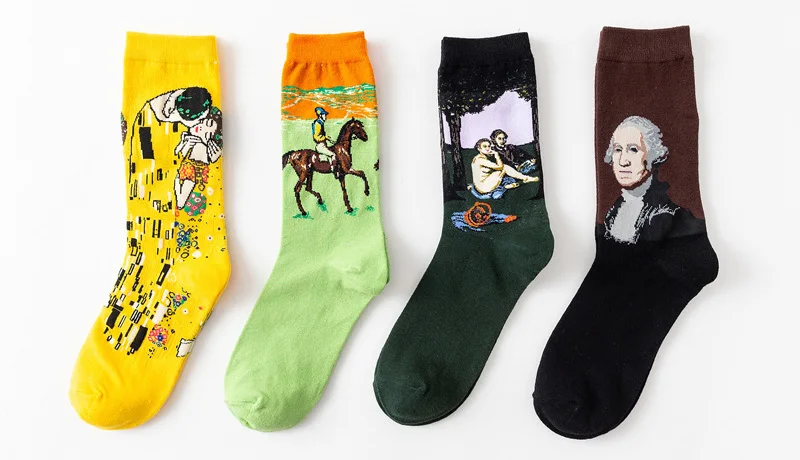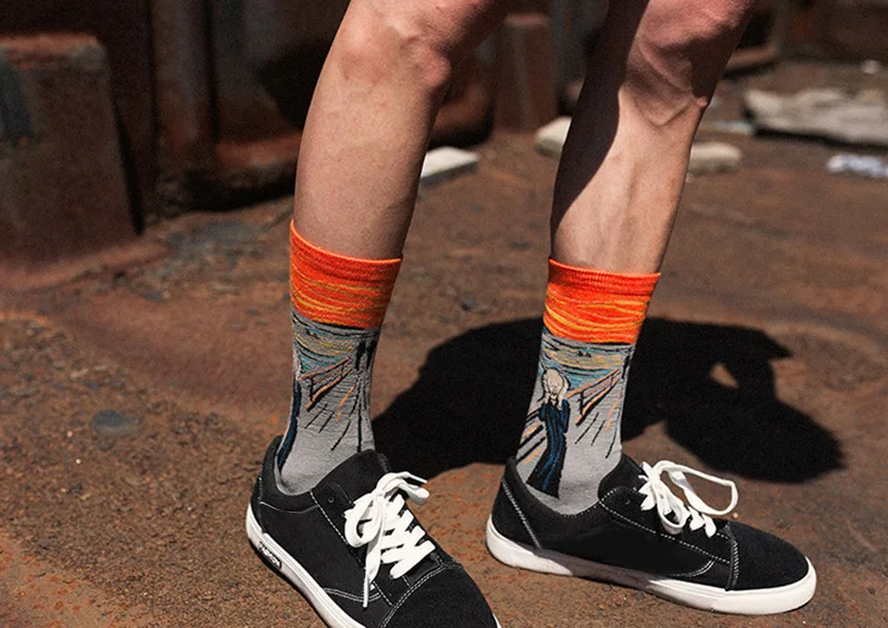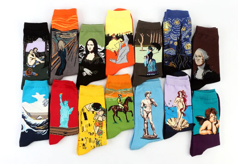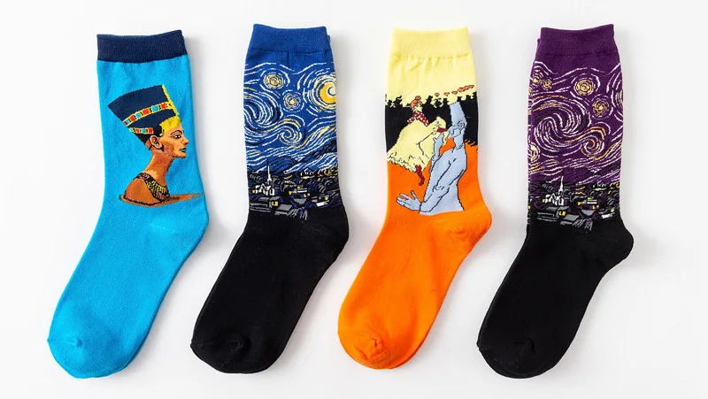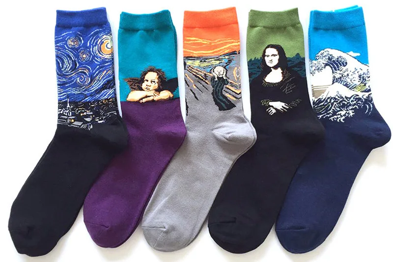 Женские хлопковые носки с рисунком Ван Гога, забавные осенне-зимние Ретро Носки с рисунком, милые модные счастливые Мужские Короткие Носки с рисунком