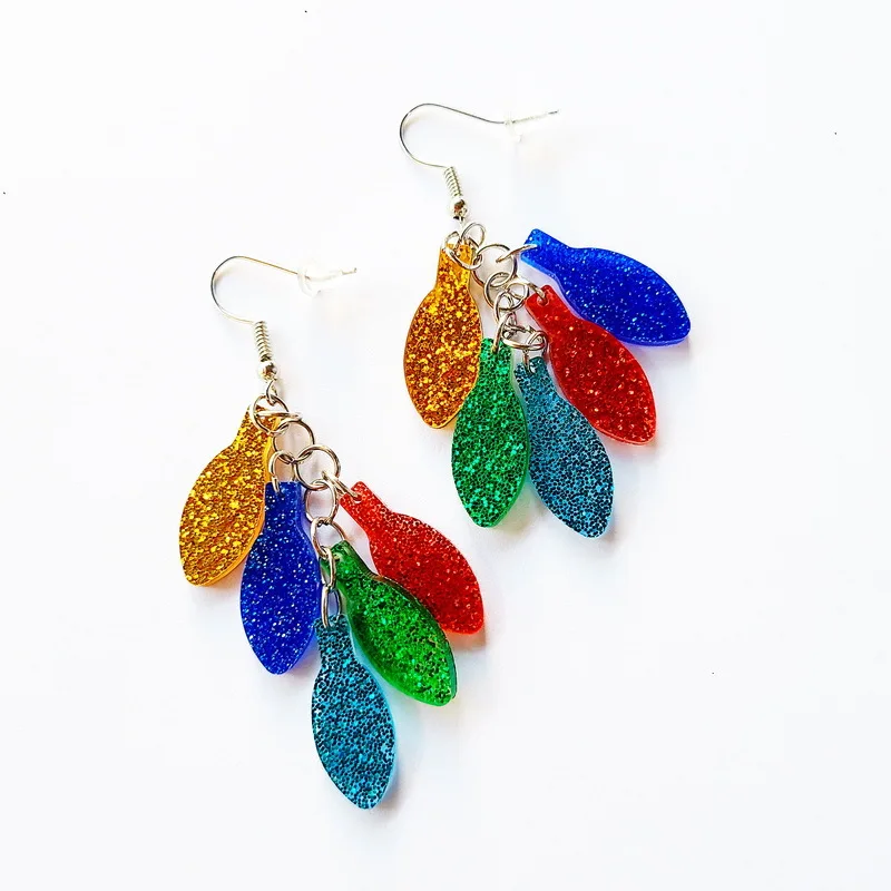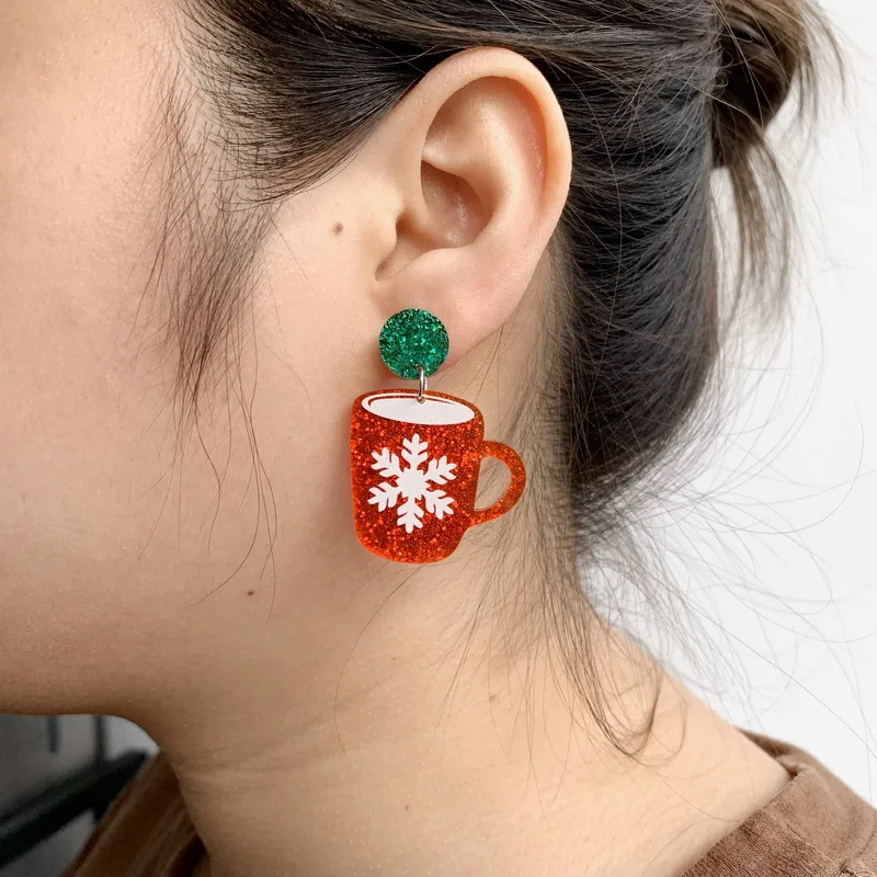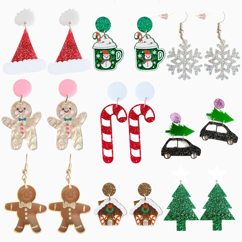 Модные рождественские серьги для женщин и девочек, геометрические блестящие акриловые висячие серьги с динозавром, снеговиком, украшения для вечеринок, рождественские подарки