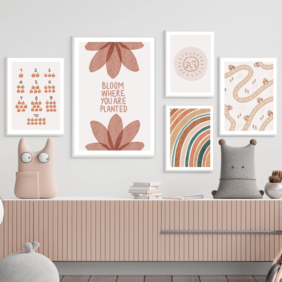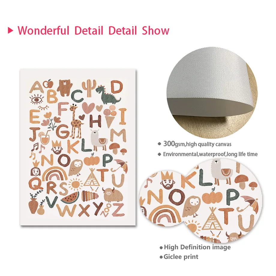Настенная картина с радужным алфавитом, скандинавские постеры с изображением Луны и солнца, настенные картины для декора детской комнаты