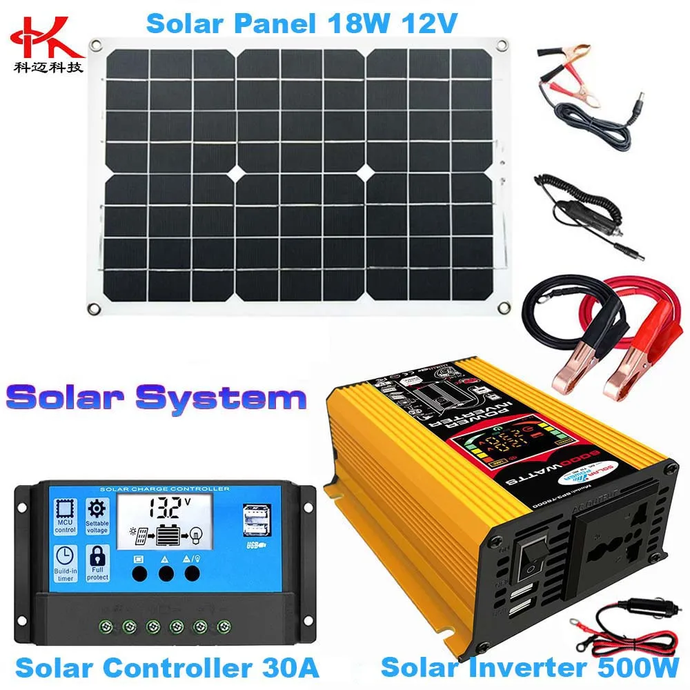 Система питания T3Y = преобразователь солнечной энергии, трансформатор 12 В в 110 В 220 В 500 Вт + солнечная панель 18 Вт 12 В + контроллер 30 А