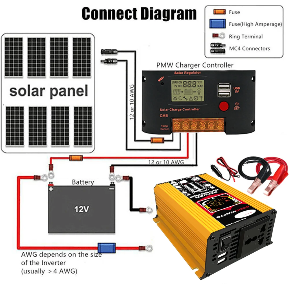 Автомобильный инвертор с 2 usb-портами и выходом переменного тока. Инвертор питания поставляется с бесплатным прикуривателем и 2 зажимами для батарей, Обеспечивая непрерывную мощность 500 Вт. (Пожалуйста, убедитесь, что общая номинальная мощность подключенных устройств ≤ 500 Вт).
