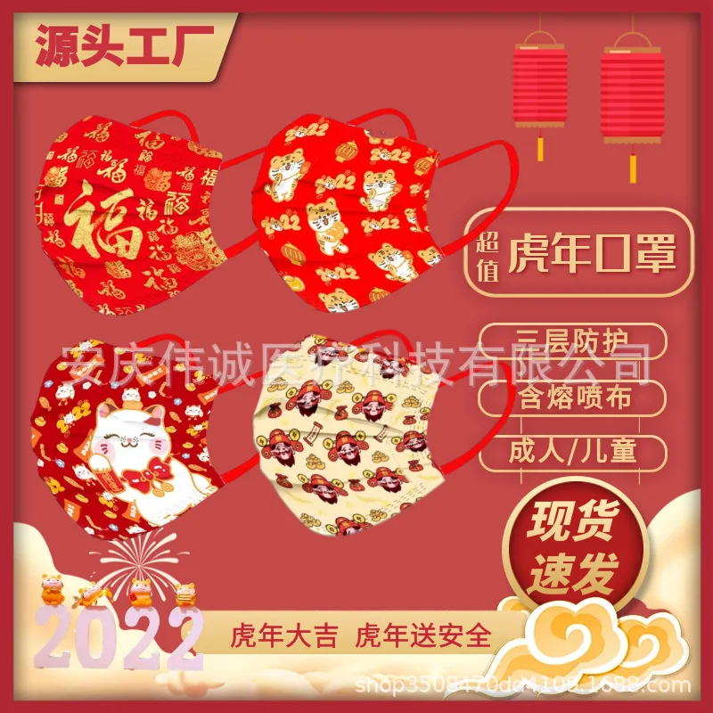 Маска 2022 маска для лица на китайский новый год одноразовая маска для китайского Нового года для взрослых и детей украшения на китайский новый год 2022 тигр