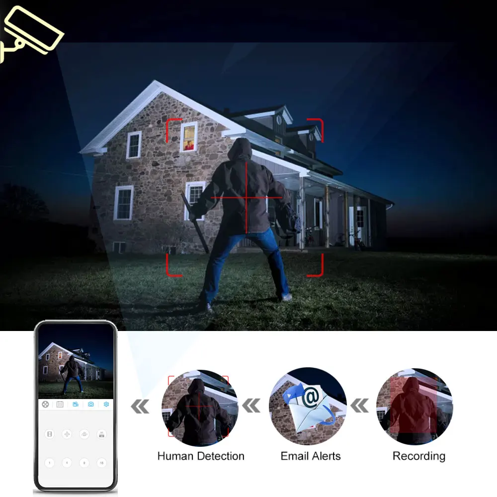 Можно настроить область, которую вы хотите контролировать, когда она срабатывает, она отправит сообщение на вашу электронную почту, вы можете получить информацию из первых рук, независимо от того, когда и где вы находитесь.