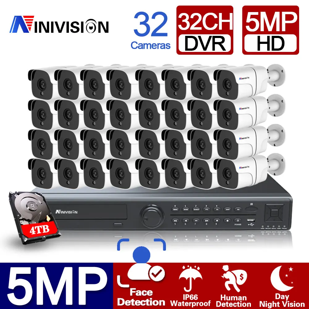 Комплект видеорегистратора H.265 32CH AHD 5mp 32 канала DVR HD 5MP 1920P наружный водонепроницаемый комплект видеонаблюдения