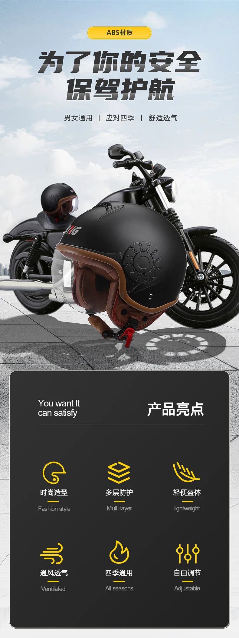 Винтажный мотоциклетный шлем с открытым лицом 34, для мужчин и женщин, Электрический Безопасный скутер, мотоцикл, каска, мотошлем, сертификат DOT