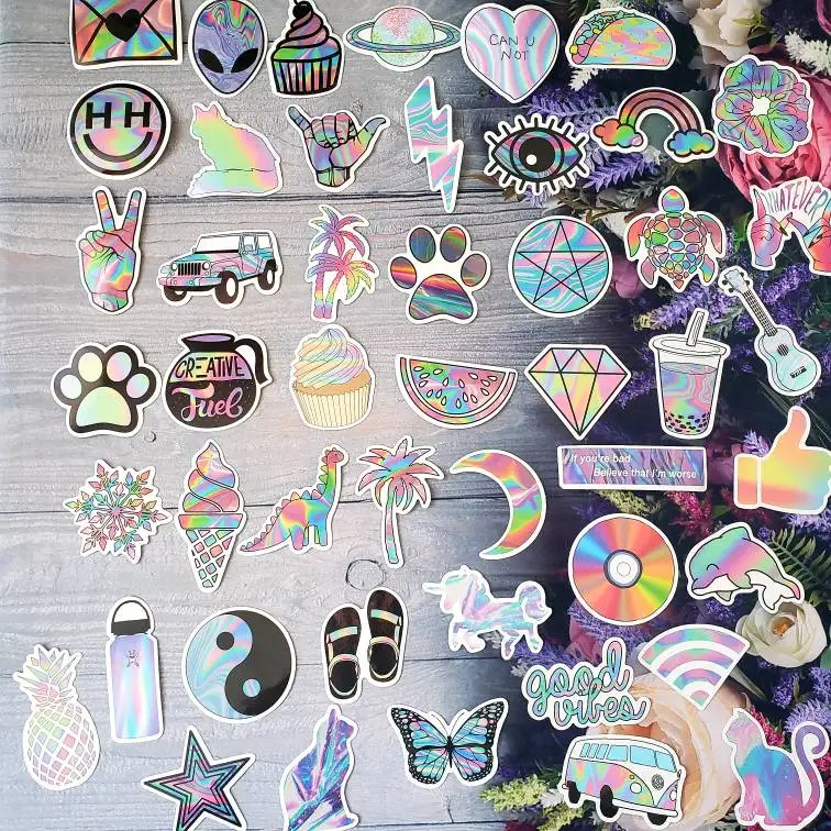 50 шт. смешанный Голографический лазерный мультяшный стикер VSCO s ...