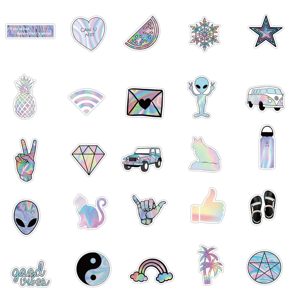 103050 шт. смешанные голографические лазерные Мультяшные наклейки VSCO s чемодан скейтборд милые DIY крутые Граффити Девушка градиентные наклейки
