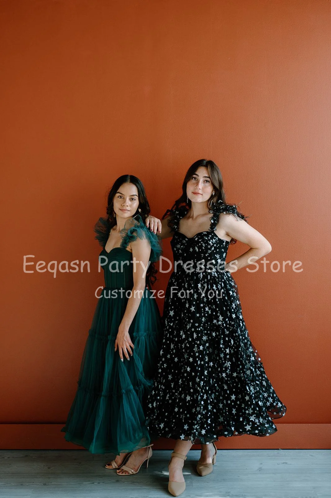 Eeqasn, простые темно-зеленые платья средней длины для выпускного вечера на тонких бретелях, женское платье с подвесками до щиколотки для свадебной вечеринки