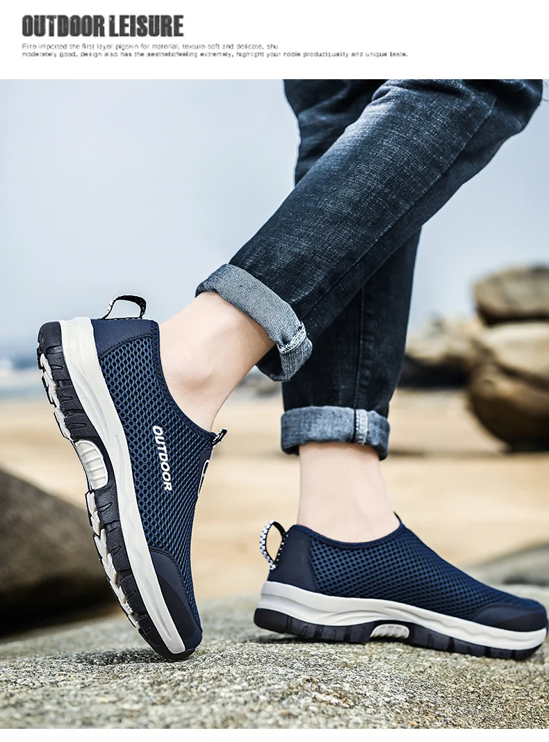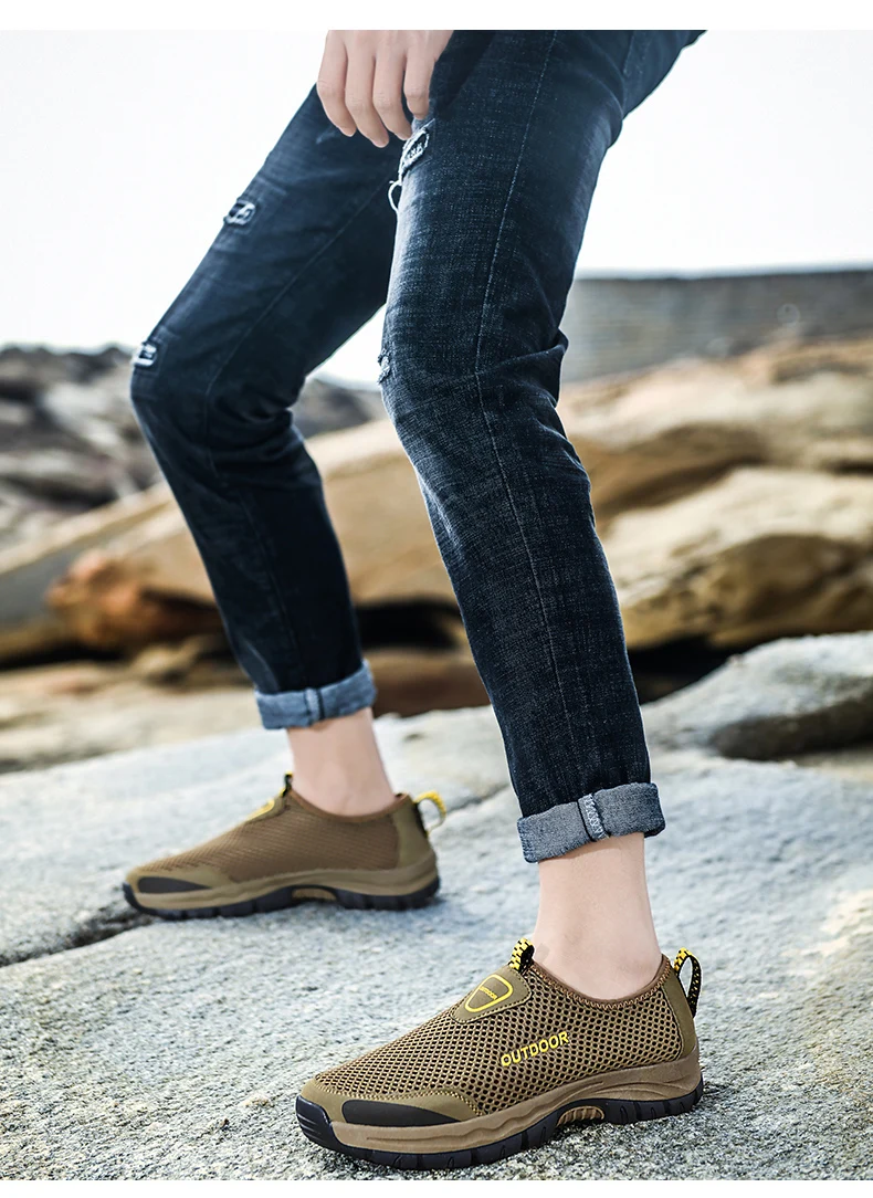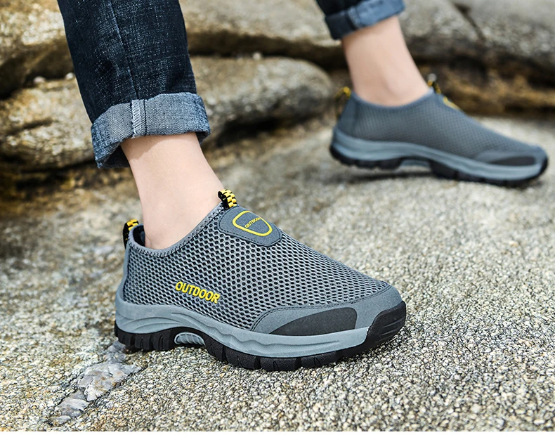 Мужские кроссовки без шнуровки, сетчатые дышащие кроссовки для активного отдыха, повседневные, Нескользящие, для скалолазания и походов, модель размера плюс 48, лето 2022