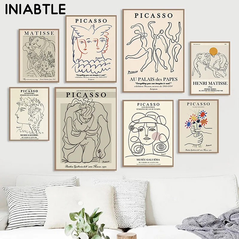 Художественные плакаты и принты на стену в стиле ретро Пикассо Матисс абстрактные картины на холсте с цветочным рисунком для девочек для декора дома в гостиной