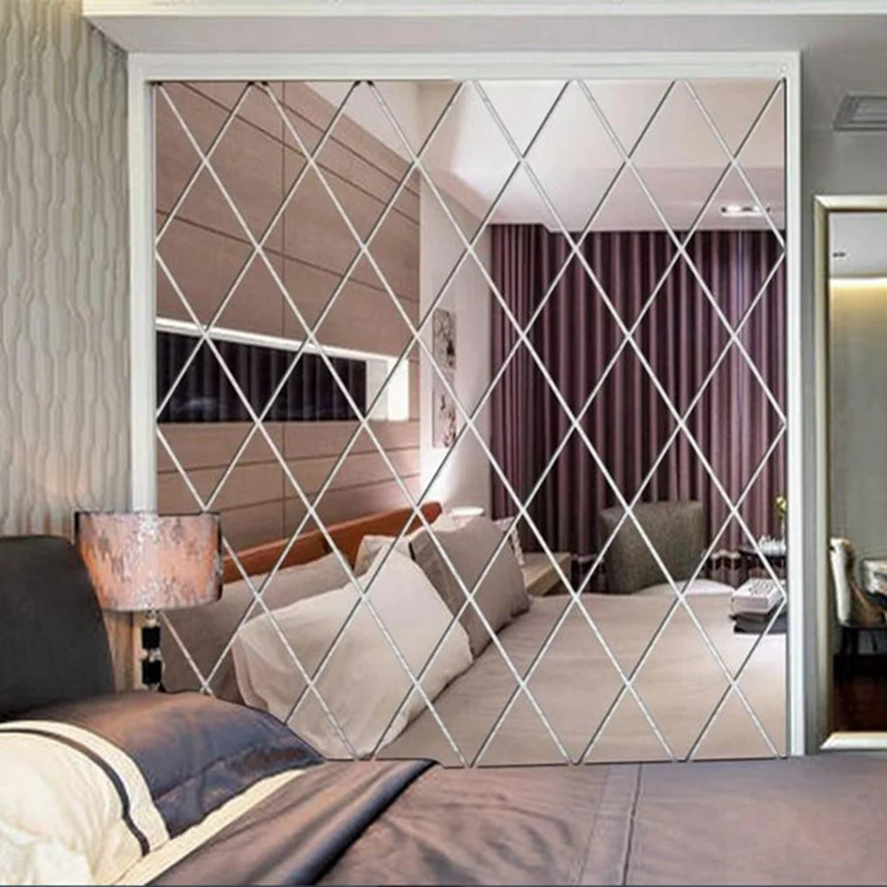 1 набор акриловых зеркальных настенных наклеек с бриллиантами и треугольниками