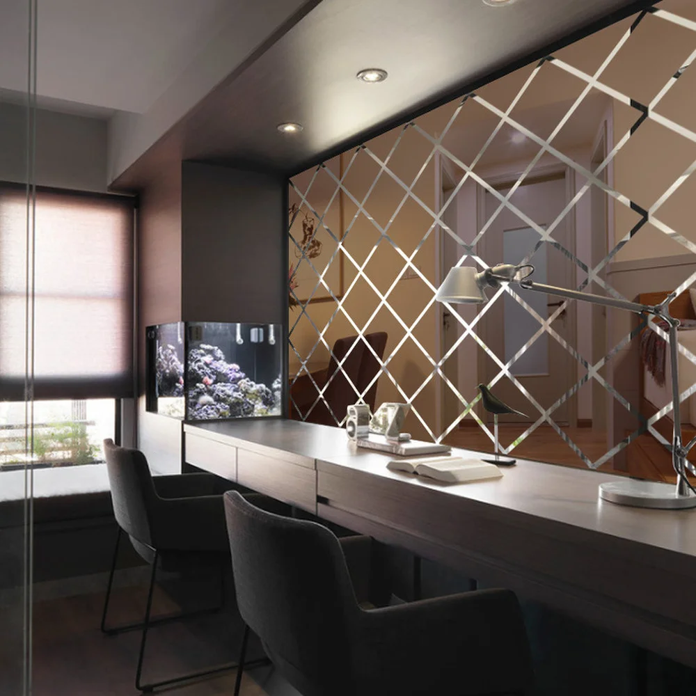 2. Зеркальная Наклейка на стену вызовет усиленную иллюзию большого размера пространства, а слегка искаженное отражение может позволить забавным внешним видом для развлечения.