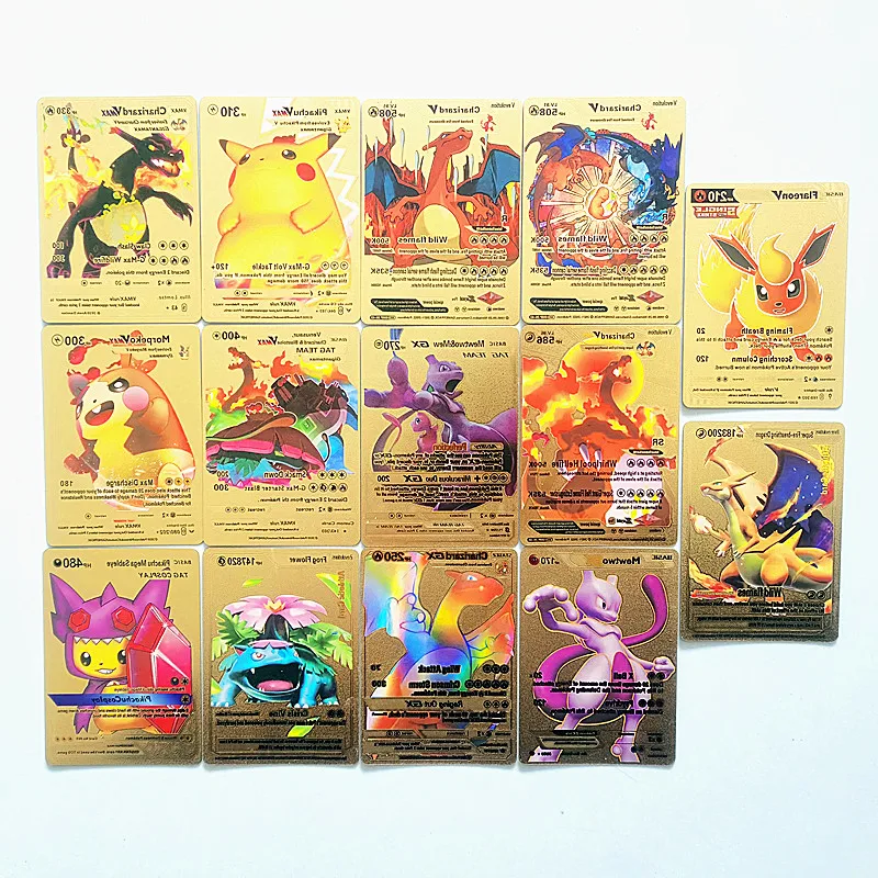 2022 Оригинальная карта покемона из золотой фольги, серебряная карта покемона, настольная игра, детский подарок, детские подарки на день рождения