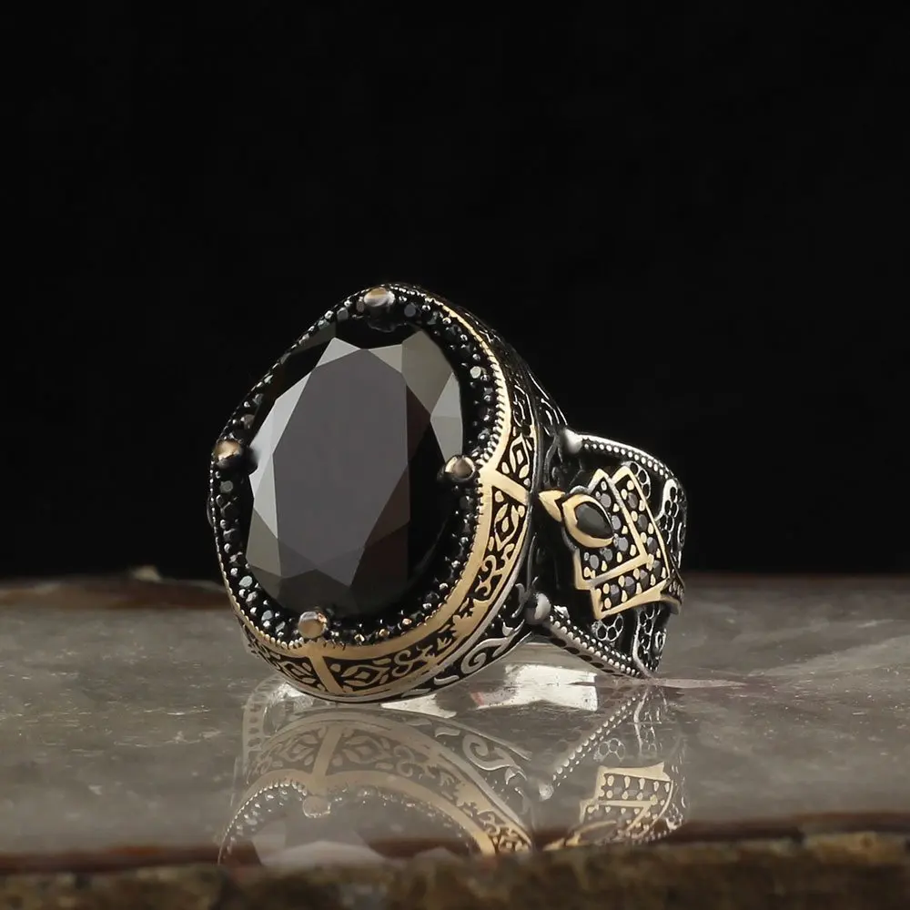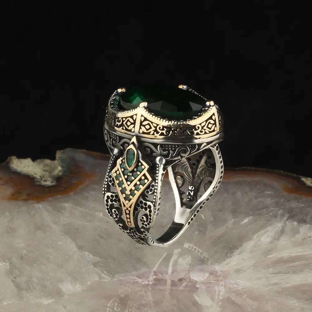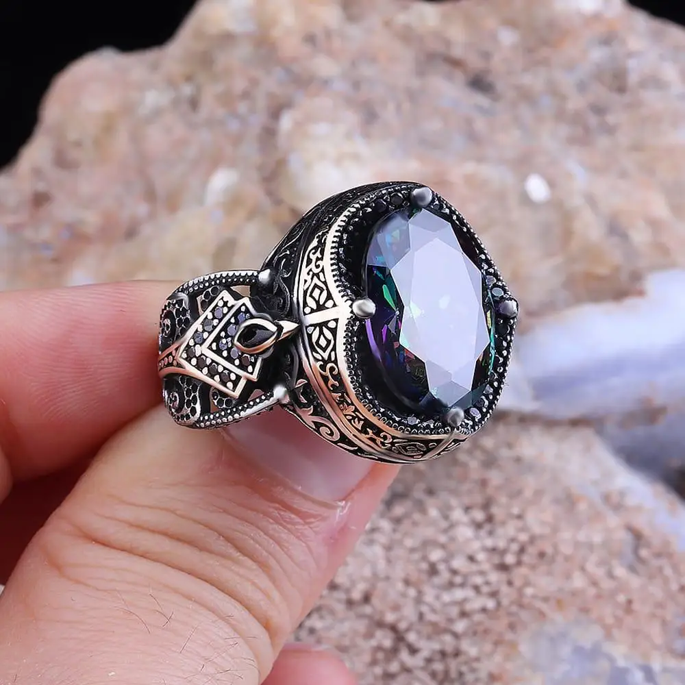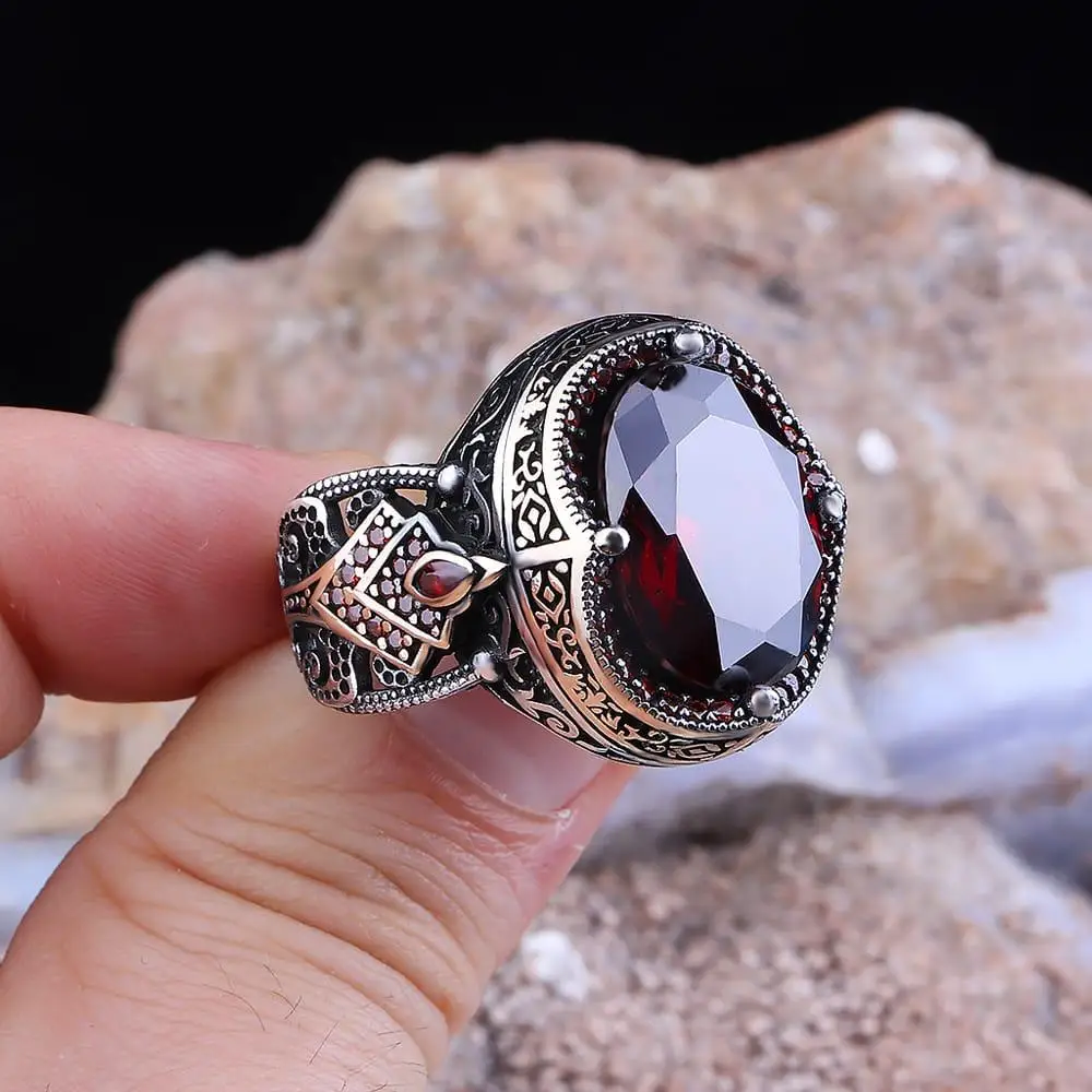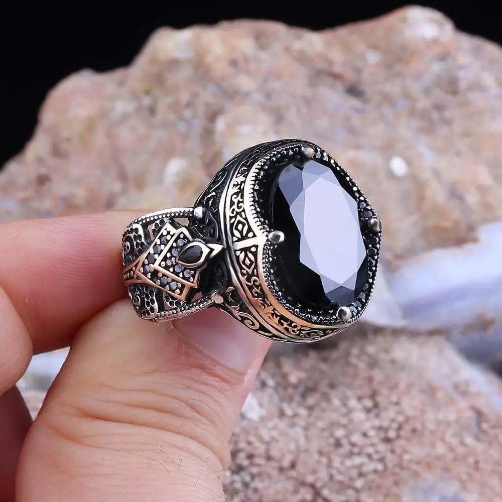 Серебряное кольцо с рисунком для мужчин, настоящий чистый натуральный черный зеленый красный аквамарин из циркона, турецкие ювелирные изделия ручной работы