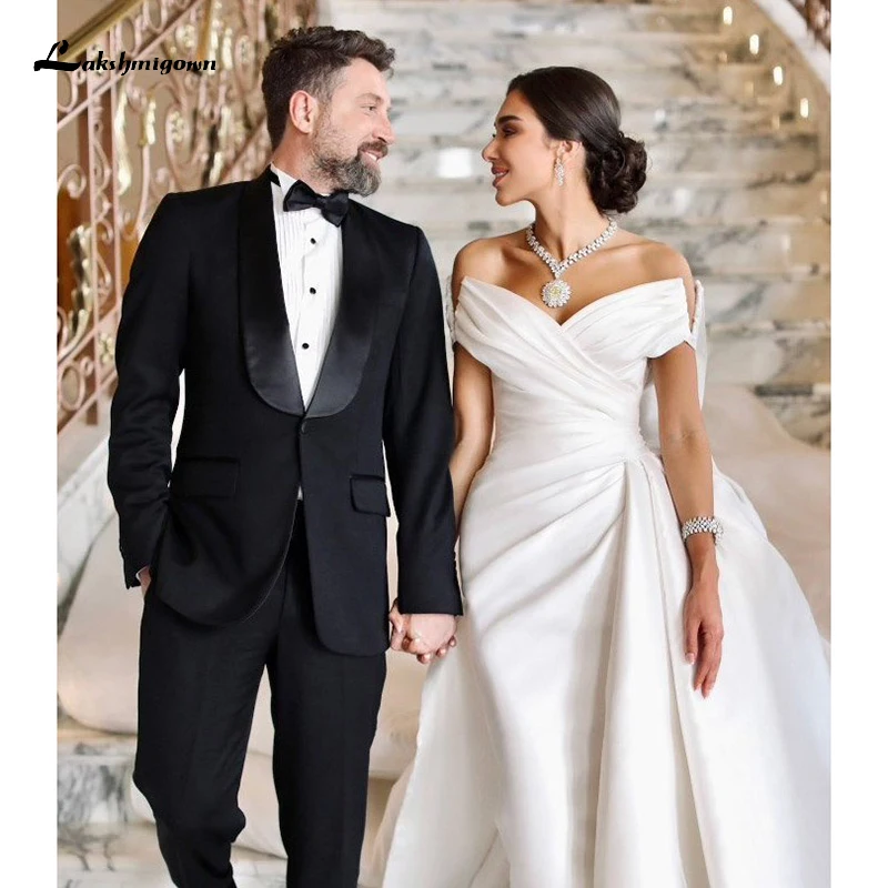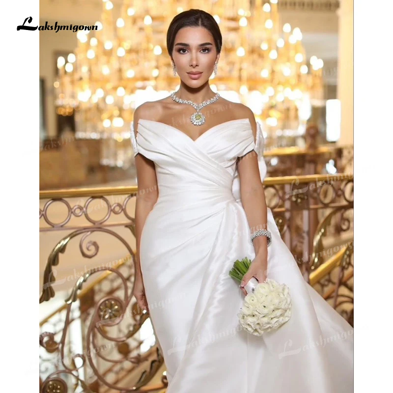 Свадебное платье принцессы с открытыми плечами 2022 с длинным шлейфом атласное платье-Русалка с открытой спиной для невесты плиссированные платья до пола