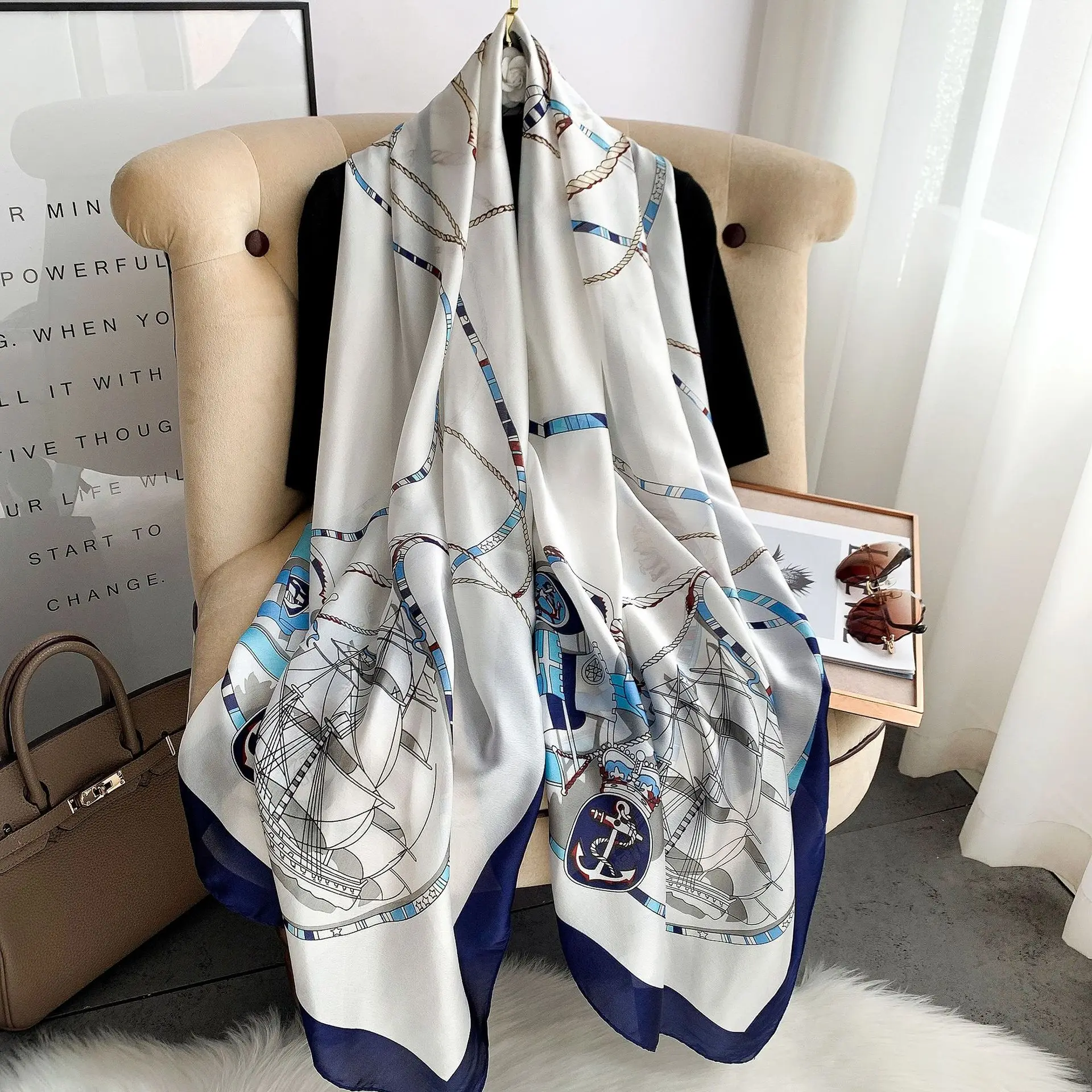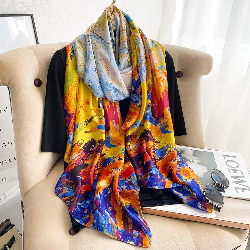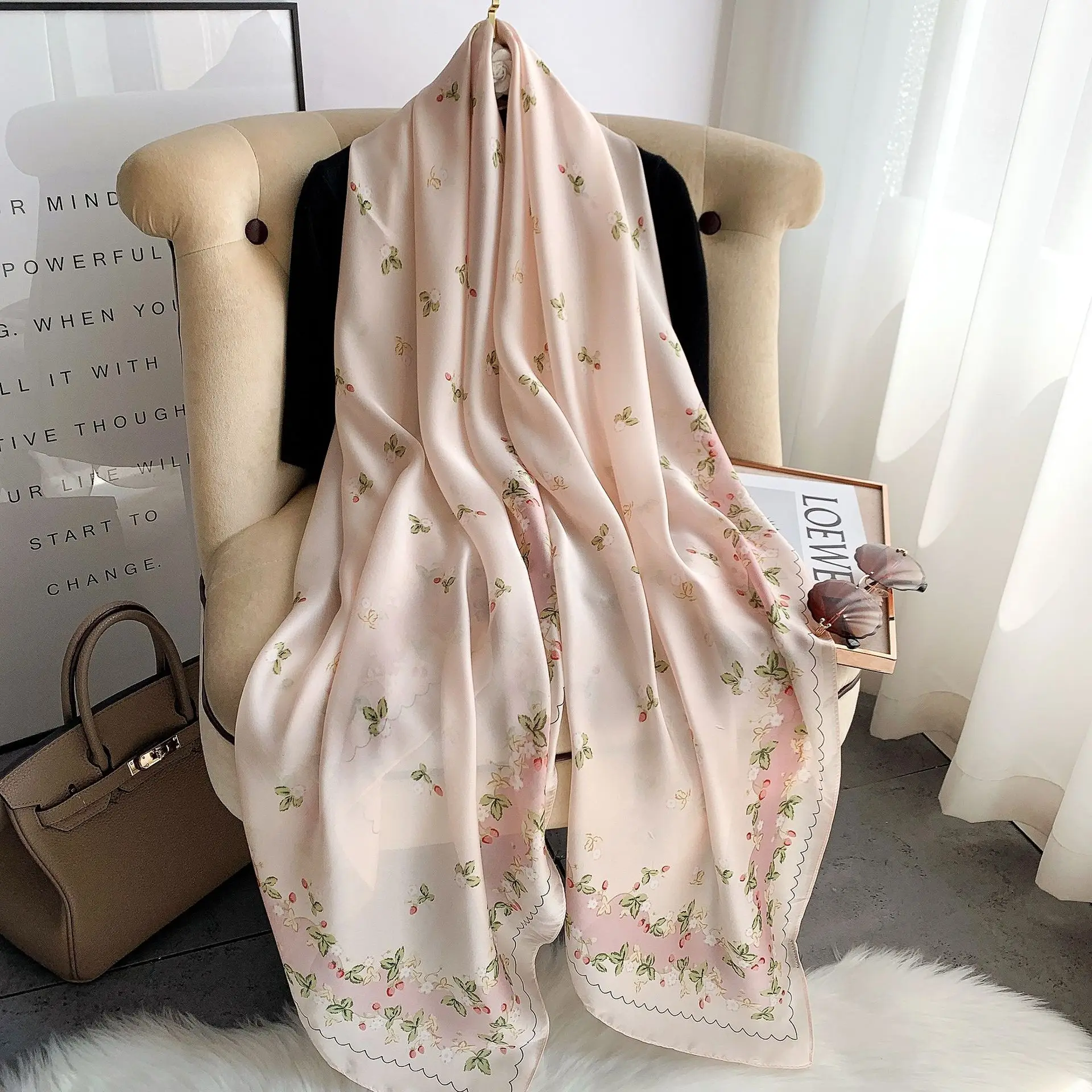 Роскошный брендовый шелковый шарф, Женская длинная шаль, мусульманский хиджаб, шарфы из пашмины, женские пляжные палантины, бандана, парео, платок, 90*180 см