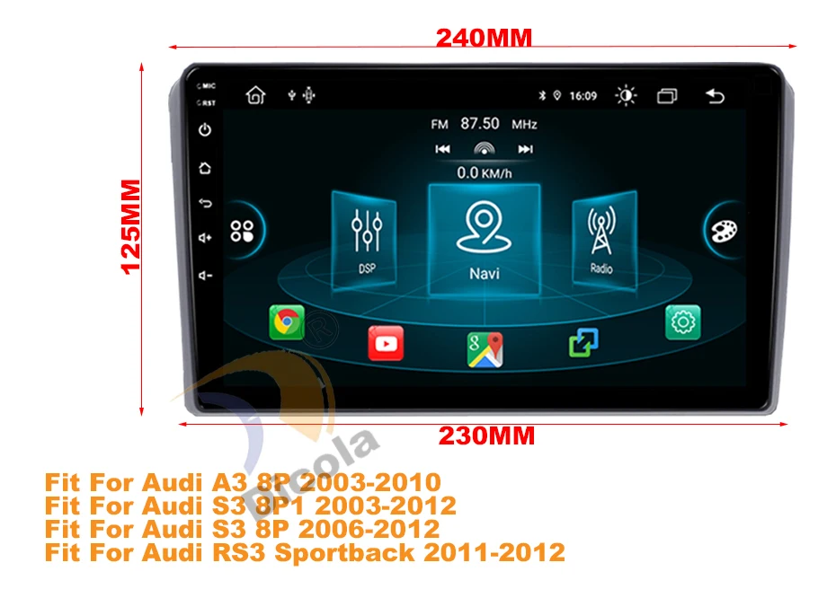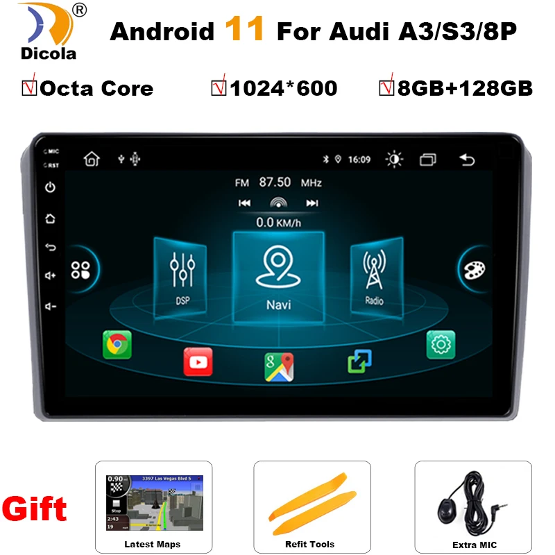 9-дюймовый DSP Android 11 IPS автомобильный мультимедийный плеер DVD GPS видео для Audi A3 S3 8P 2003-2012 RS3 Sportback BT