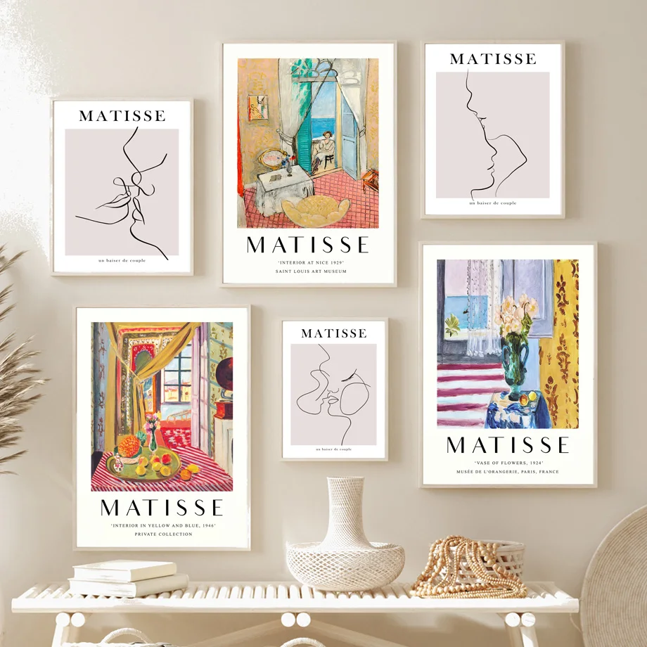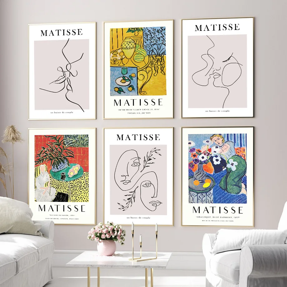 Винтажная абстрактная Настенная картина с изображением цветов Матисса для пар, настенные художественные плакаты и принты, настенные картины для декора гостиной