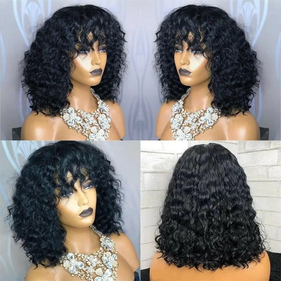 CEXXY бразильский кудрявый боб парик с челкой дешевые парики без шнуровки для черных женщин естественный цвет глубокие волны короткие боб парики человеческие волосы